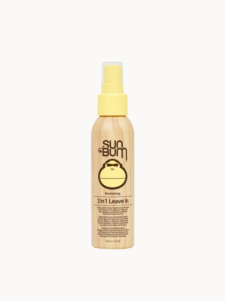 Condition, protect and detangle hair with Sun Bum’s 3-in-1 Leave-In. Spritzed onto hair wet or dry hair, the colour-safe conditioner defends your precious tresses against UV damage, dryness and colour fade with a nurturing blend of botanical oils, quinoa protein and every part of the humble banana - pulp, peel and leaf!The perfect accompaniment to a wide-toothed comb for teasing out knots, it’s a must-have for sun-worshippers and beach bums whose hair is frequently exposed to the harsh, dehydrating effects of golden rays.Vegan.