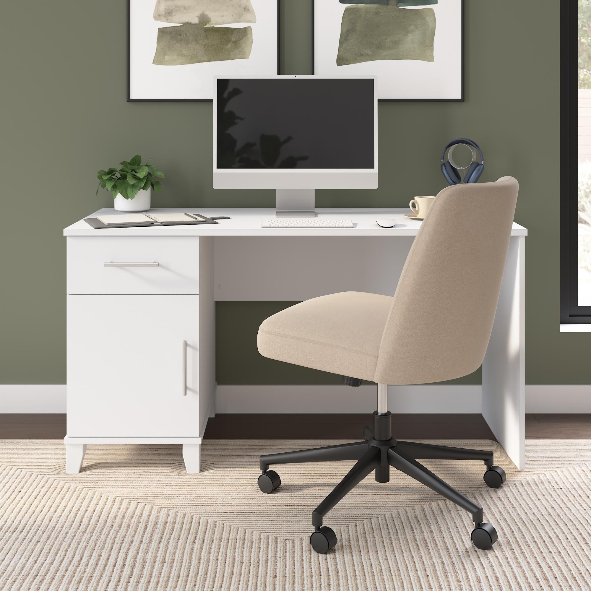 Create a workspace that keeps up with the way you work. The Bush Home Somerset 54W Office Desk with Drawer and Storage Cabinet combines a compact footprint with built-in storage to support your daily routine.