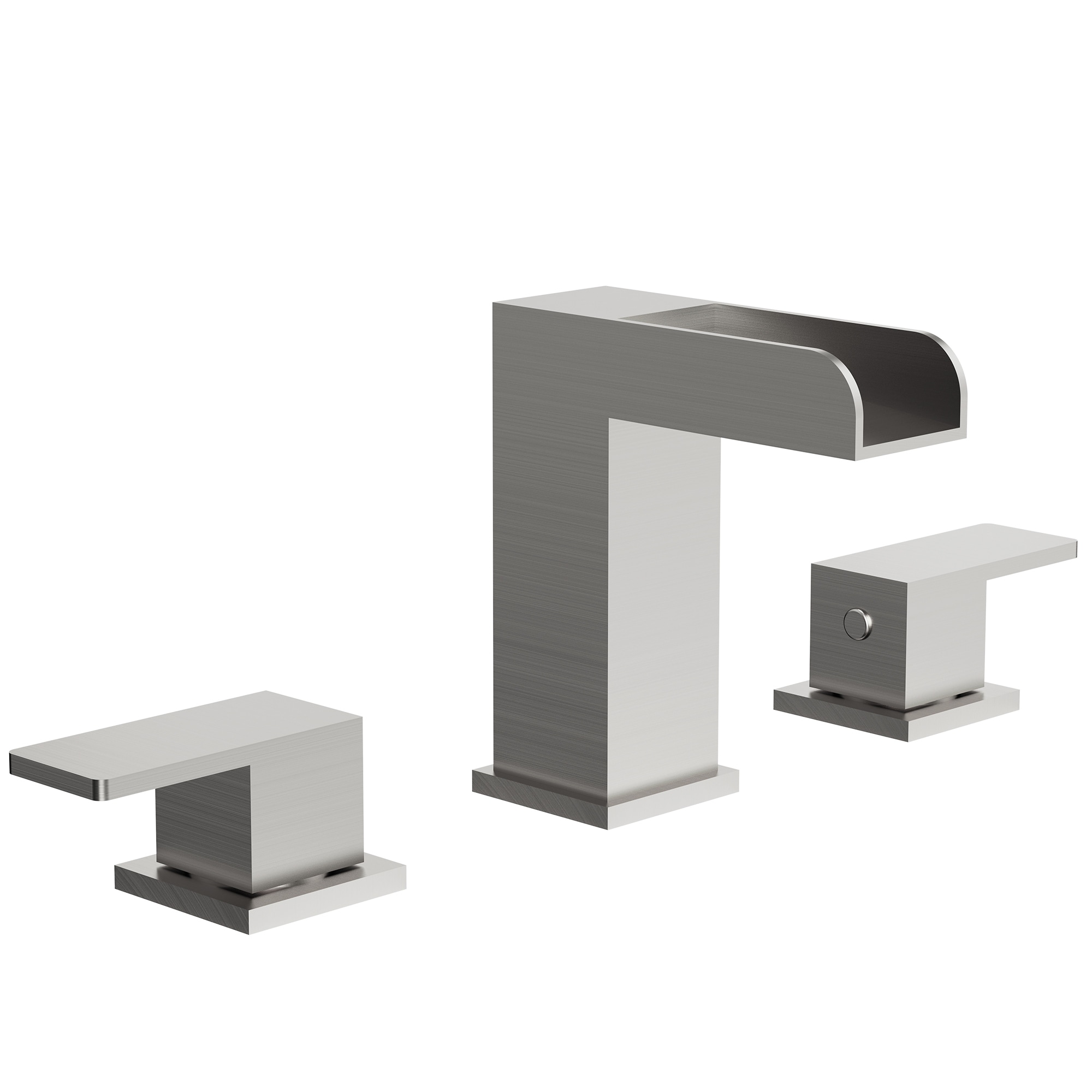 The three-hole widespread bathroom faucet adds a luxurious look to your bathroom. With the main body built from solid brass and handles built from zinc alloy, it is long-lasting for daily use and resistant to fingerprint marks, tarnish, and corrosion.