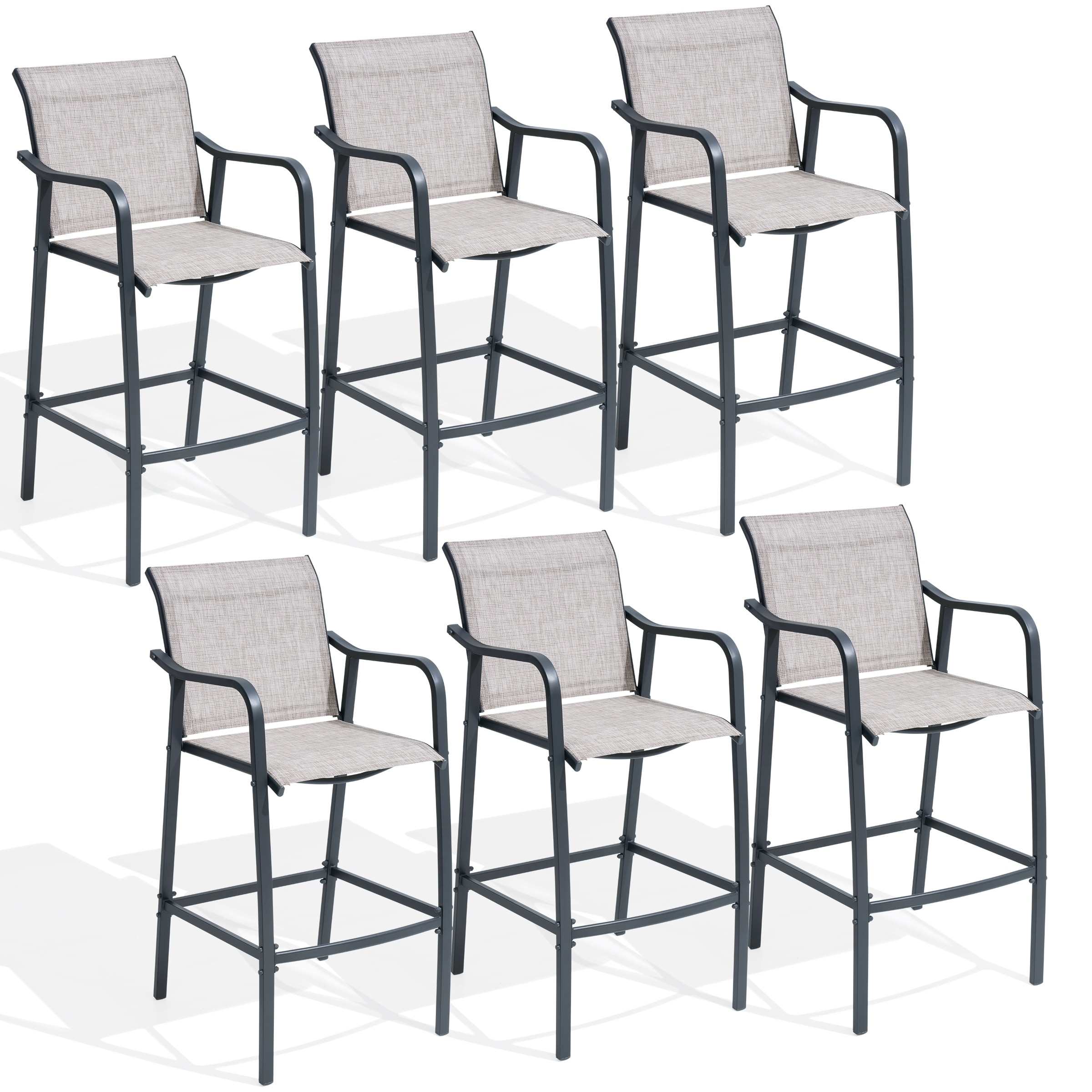 Elevate your outdoor entertaining space with this set of lightweight bar stools. Crafted with a sturdy steel frame and weather-resistant textilene sling, these stools offer superior comfort and durability.
