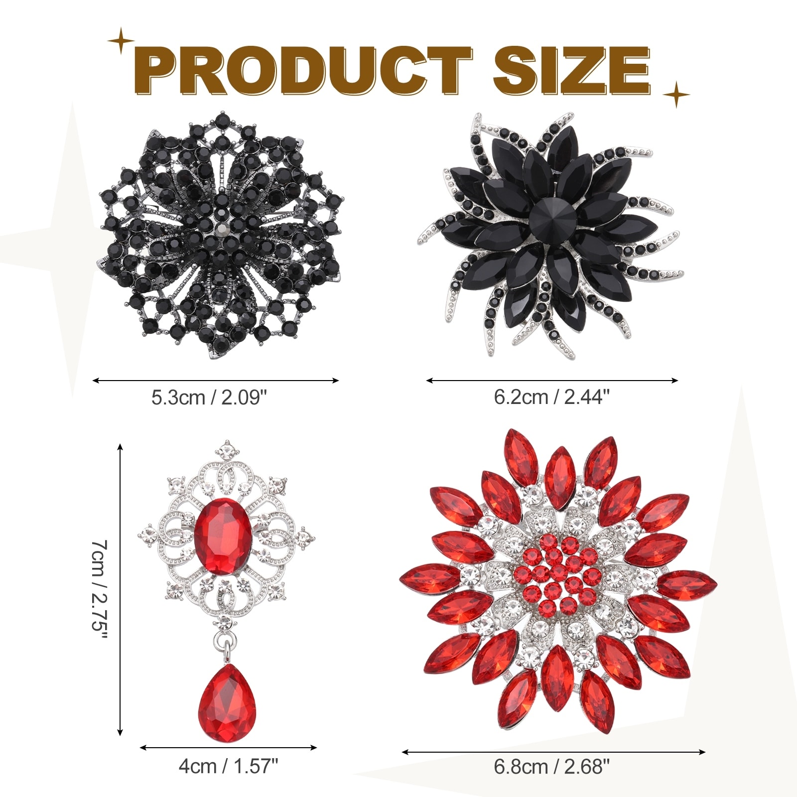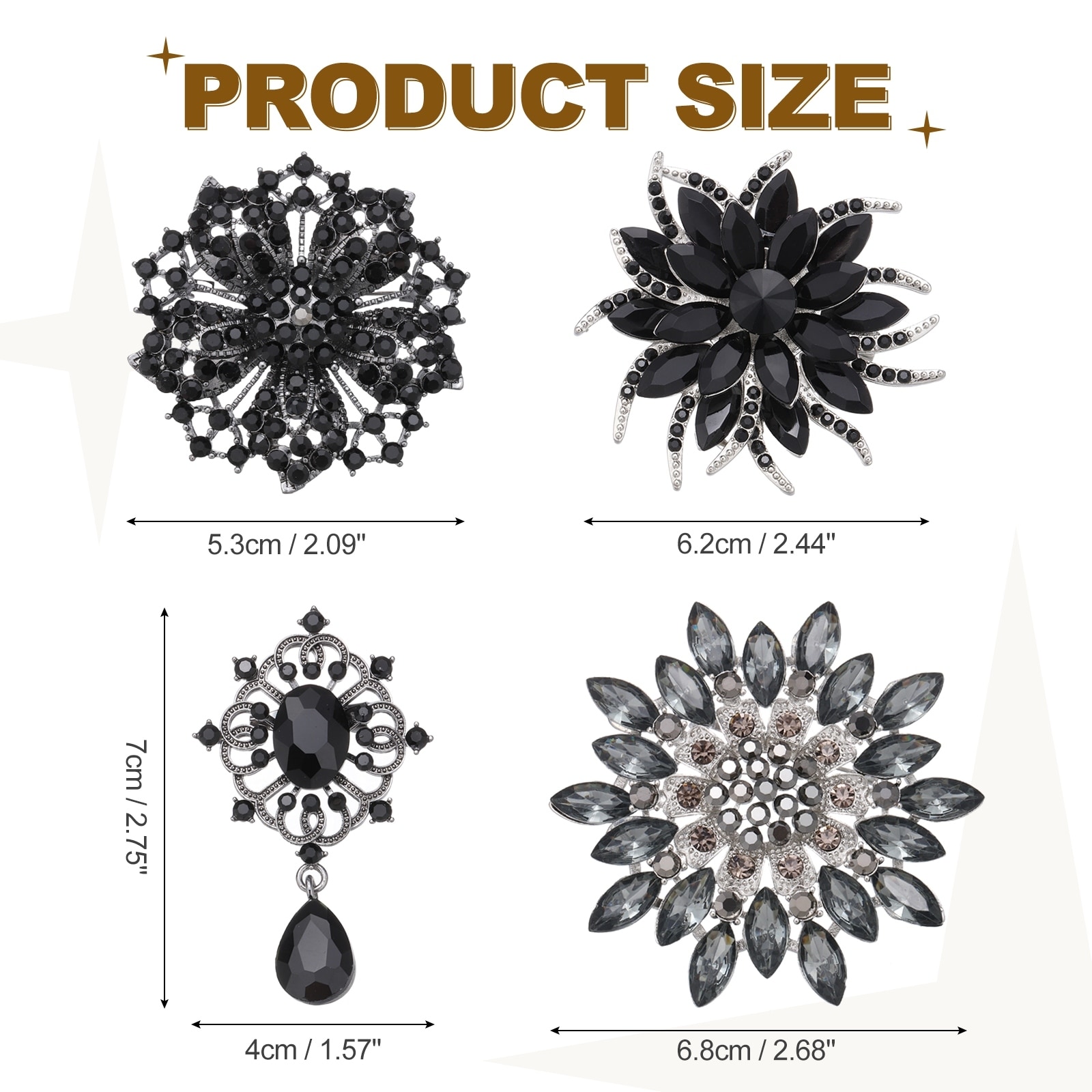 Rhinestone Sunflower Brooch Pins, 4 Style Elegant Crystal Floral Lapel Brooch Pins for Women