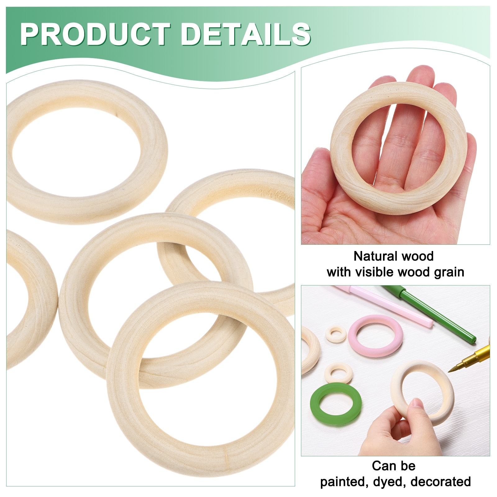 Unfinished Wooden Rings Smooth Natural Woods Macrame Rings for Curtain Connector DIY Crafts Knitting Decoration Jewelry Making