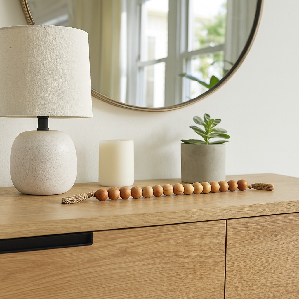 Mango Wood Jute Tassel Beaded Garland - 32"