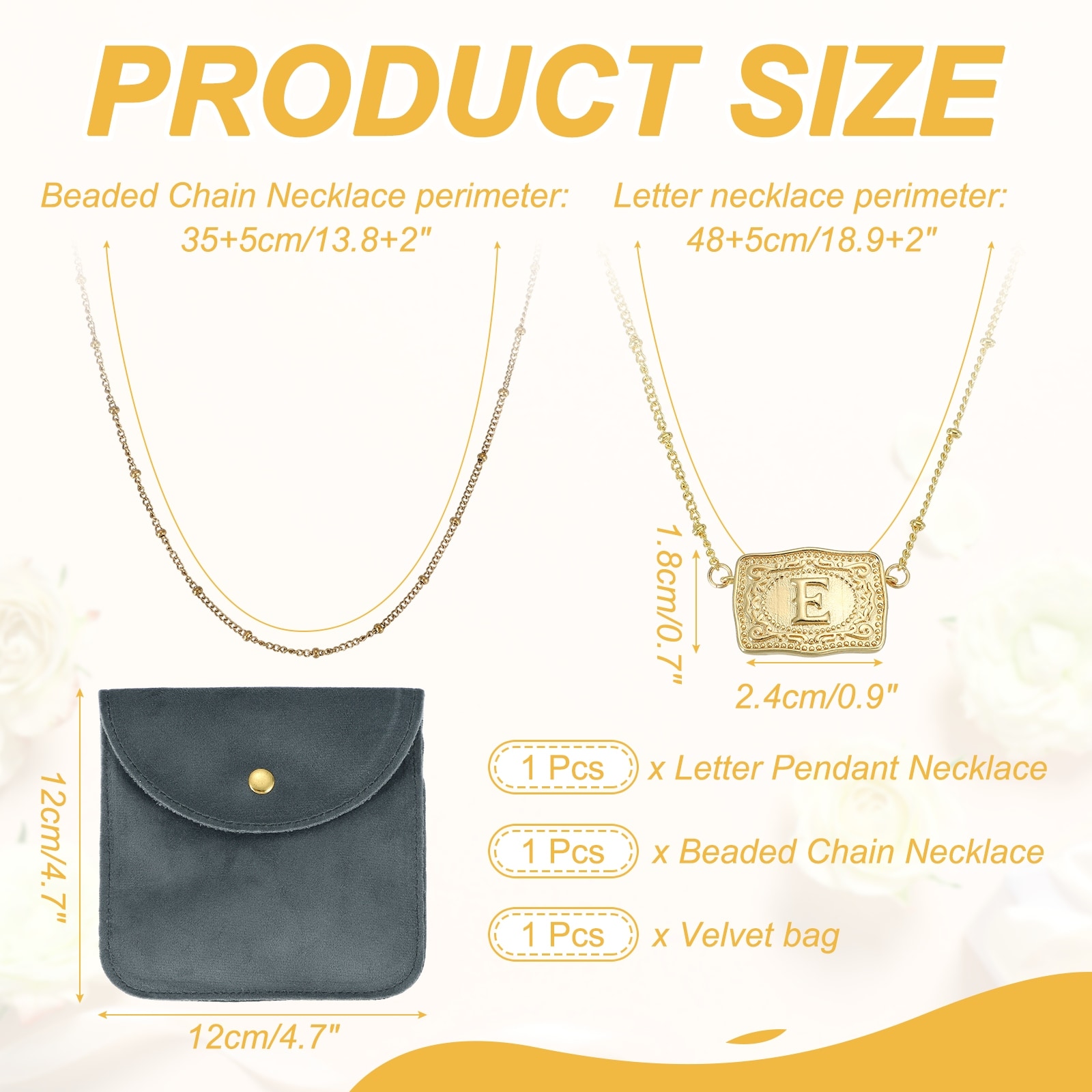 Embossed Belt Buckle Necklace, Western Initial Cow Tag Necklace with Beaded Chain Western Jewelry for Women Men Birthday Gift