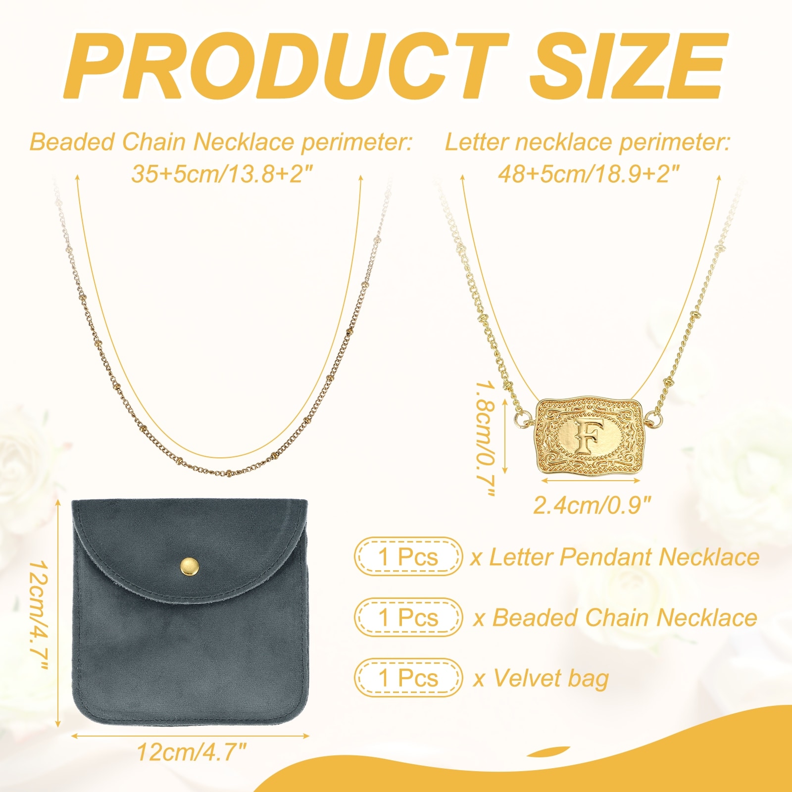 Embossed Belt Buckle Necklace, Western Initial Cow Tag Necklace with Beaded Chain Western Jewelry for Women Men Birthday Gift
