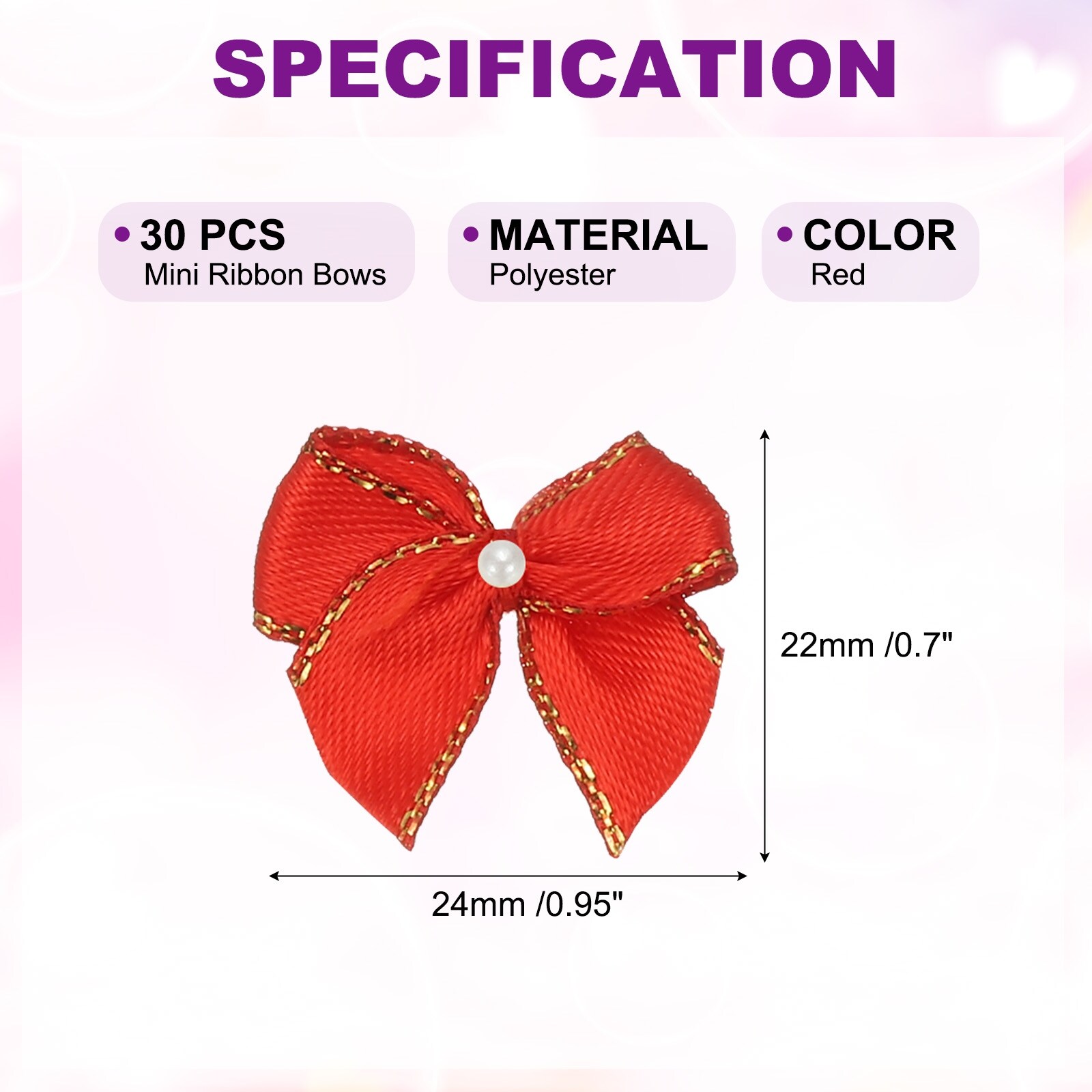 Mini Ribbon Bows, Flower Pearl Sewing Appliques Decoration for DIY Craft, Wedding, Christmas - 22cm x 24cm