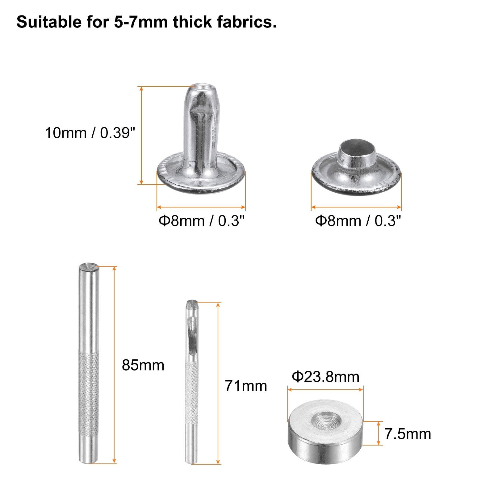 Leather Rivets Metal Double Cap Rivet Studs Fasteners with Setting Tools for Leather Craft DIY Repair Decoration