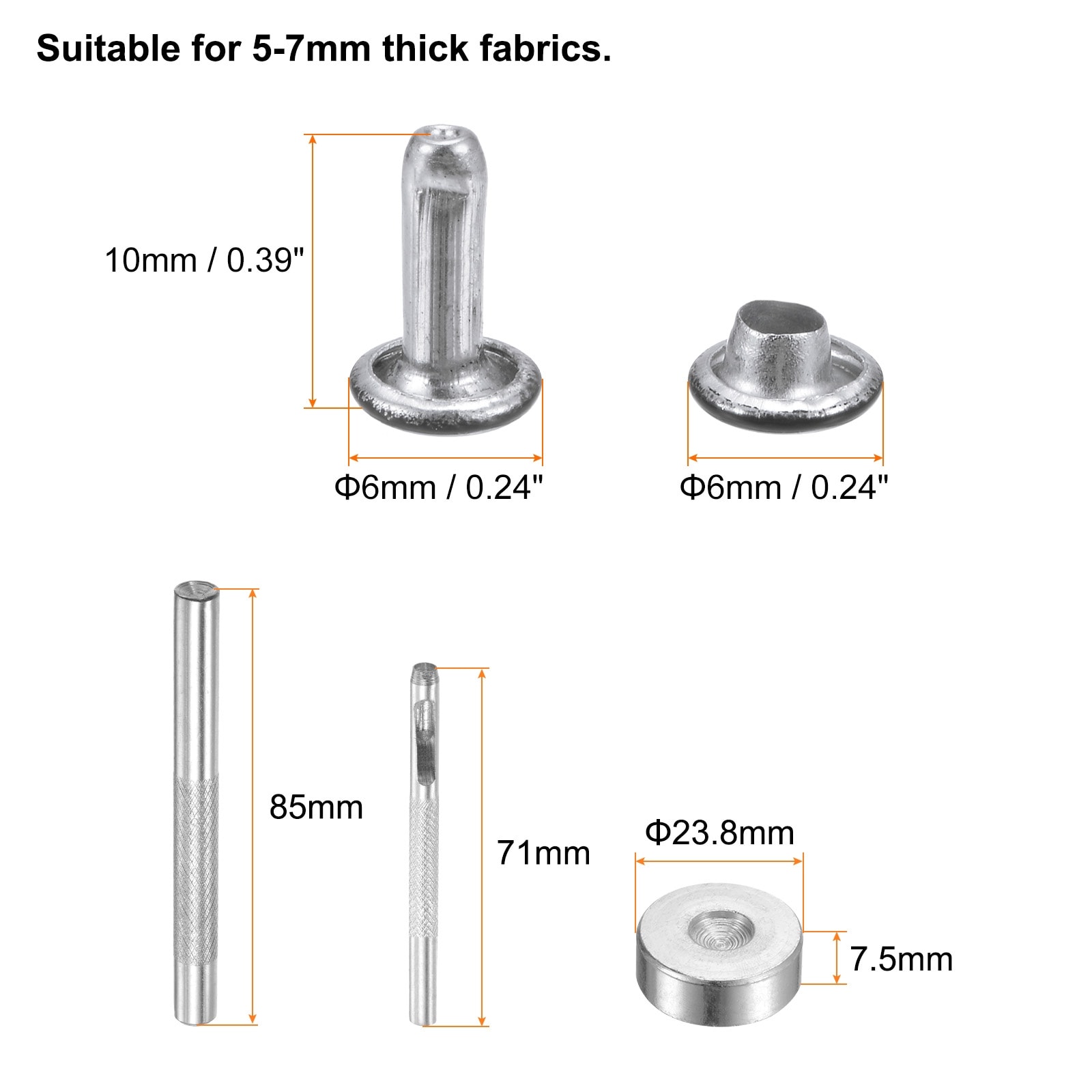 Leather Rivets Metal Double Cap Rivet Studs Fasteners with Setting Tools for Leather Craft DIY Repair Decoration