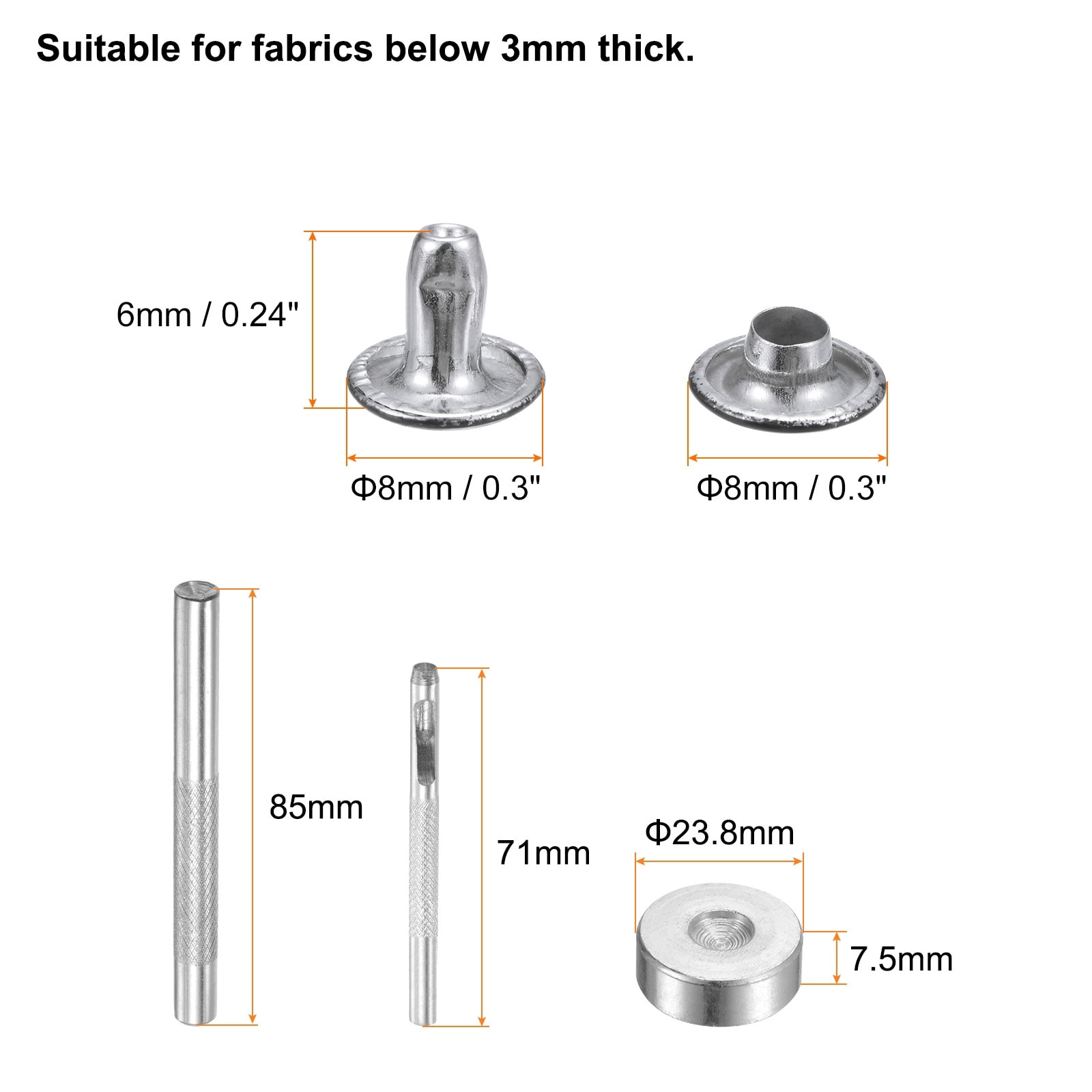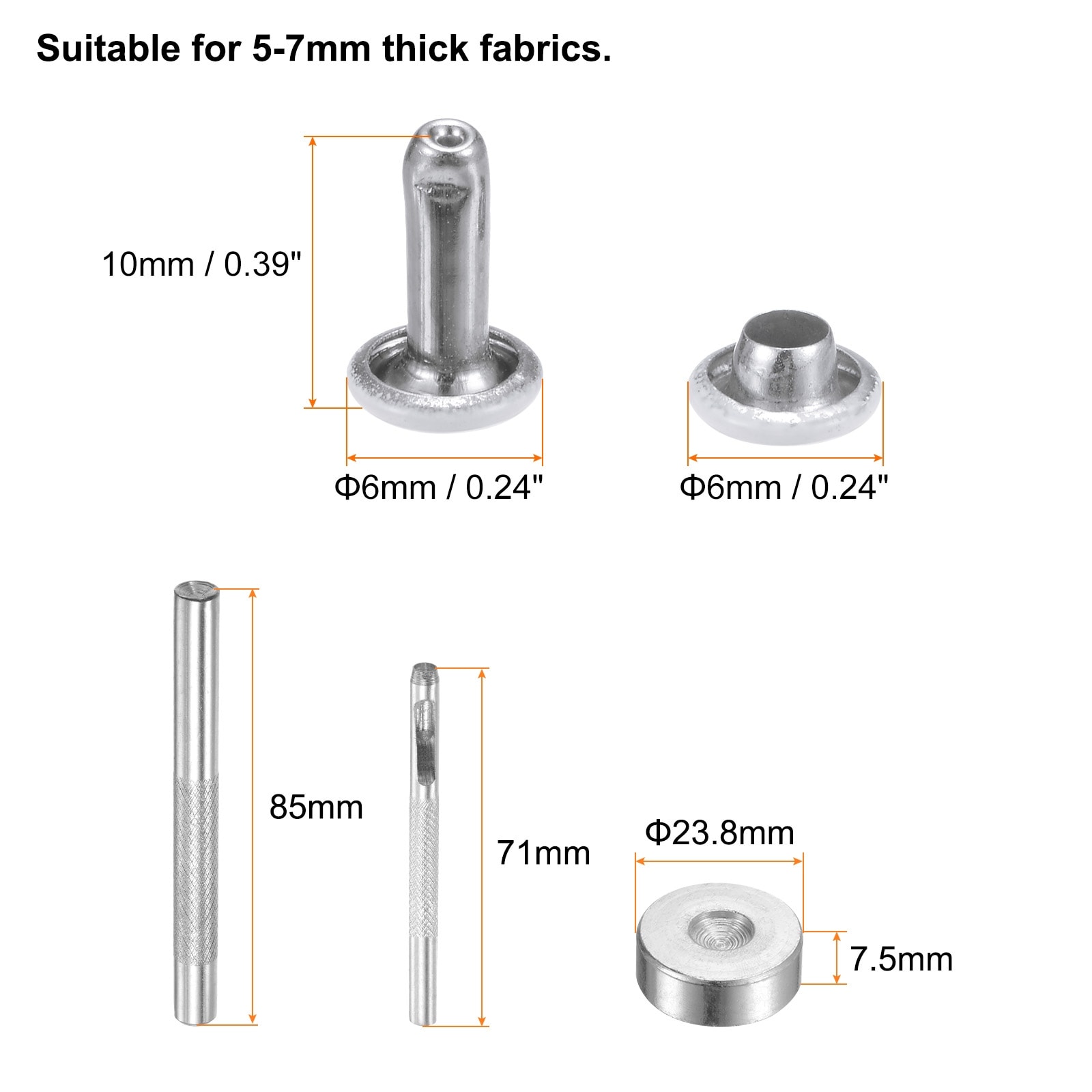 Leather Rivets Metal Double Cap Rivet Studs Fasteners with Setting Tools for Leather Craft DIY Repair Decoration