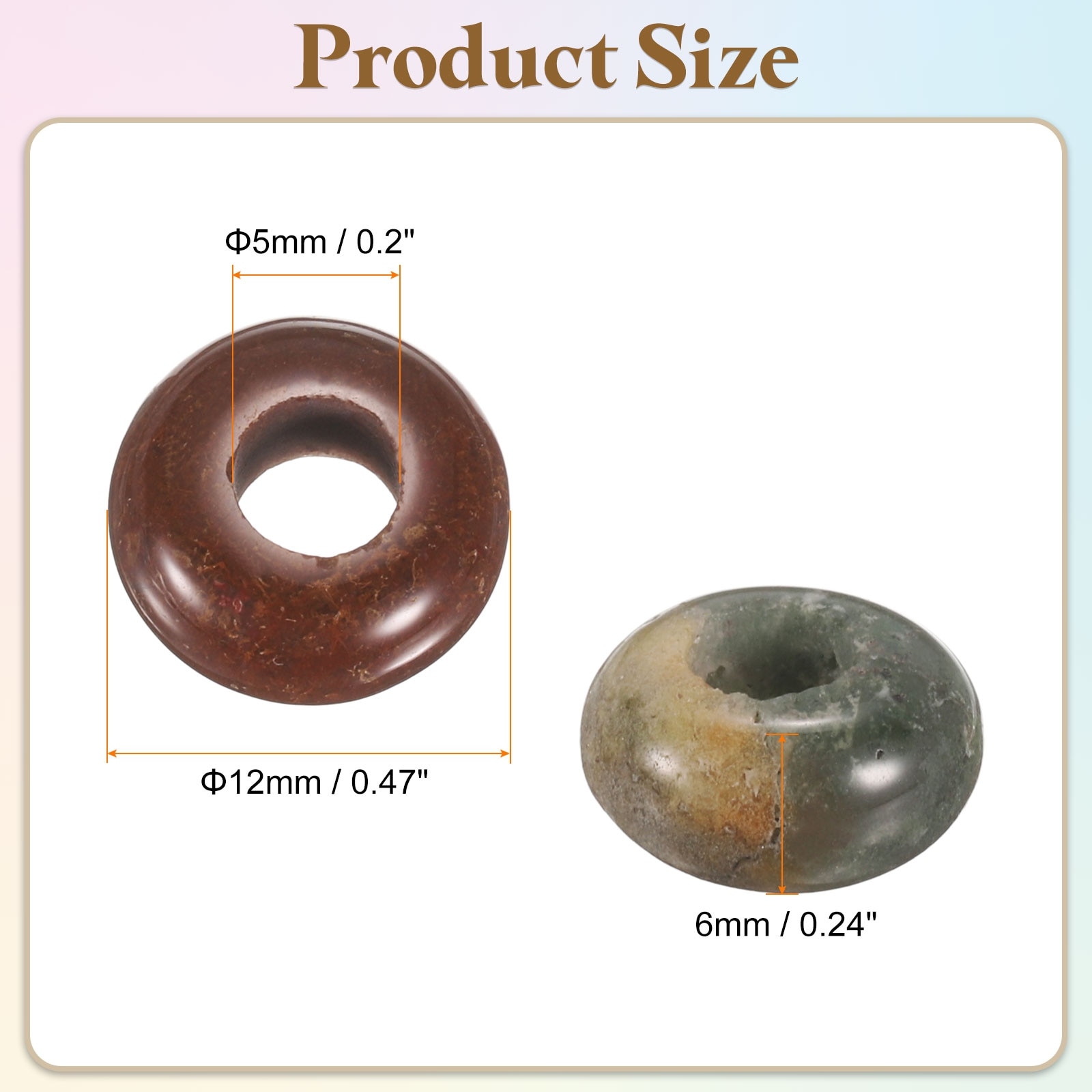 Large Hole Stone Beads Flat Round Smooth Large Hole Loose Beads for Bracelet Necklace Crafts - 0.31" x 0.55"