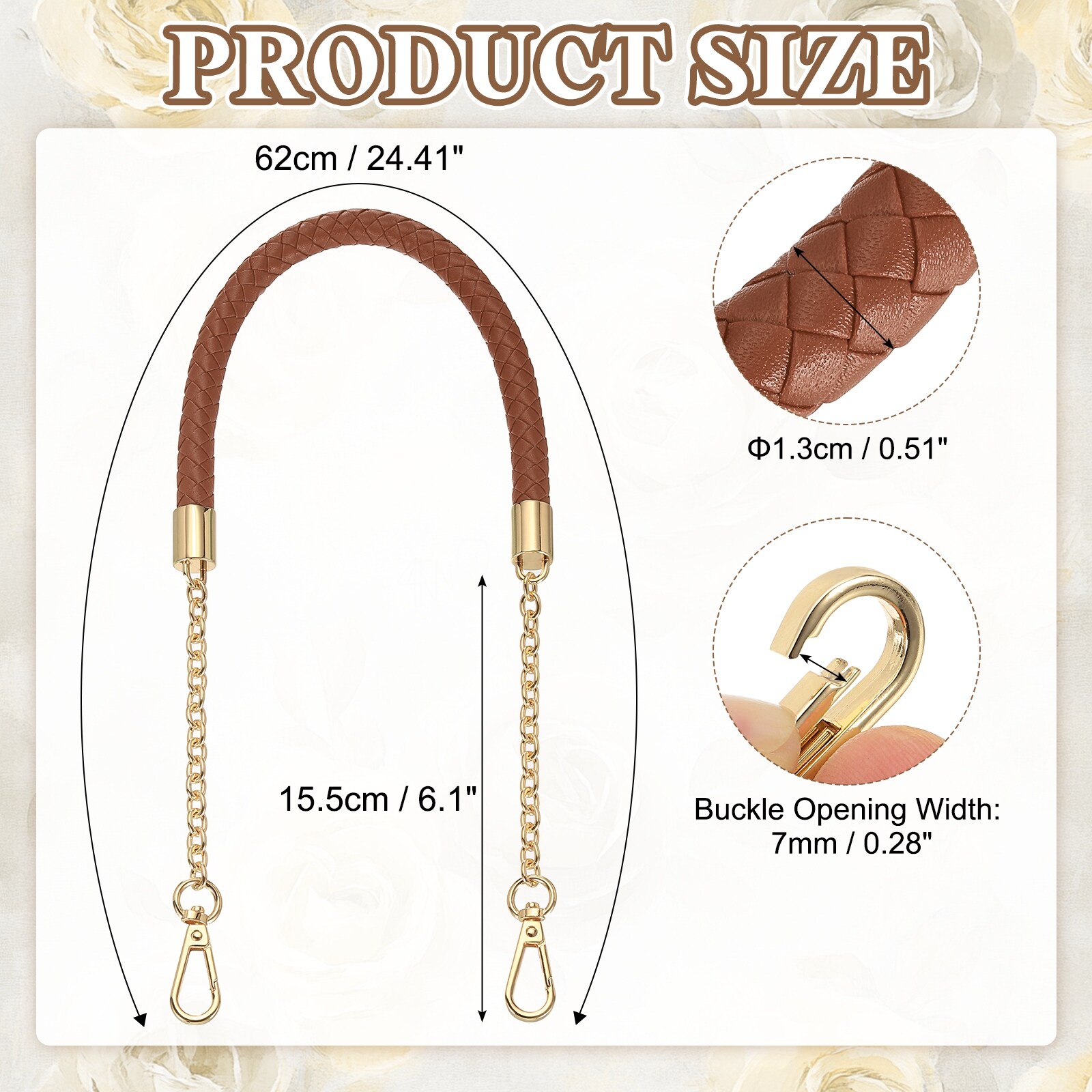 PU Leather Chain Purse Strap, Braided Purse Handle Replacement for Handbags Underarm Bag