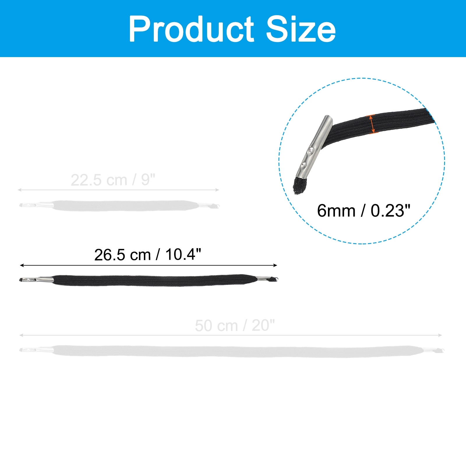 Elastic Barbed Cord Loop Stretch Flat String with Metal Barb Fasteners for Hats Masks Menus - Black