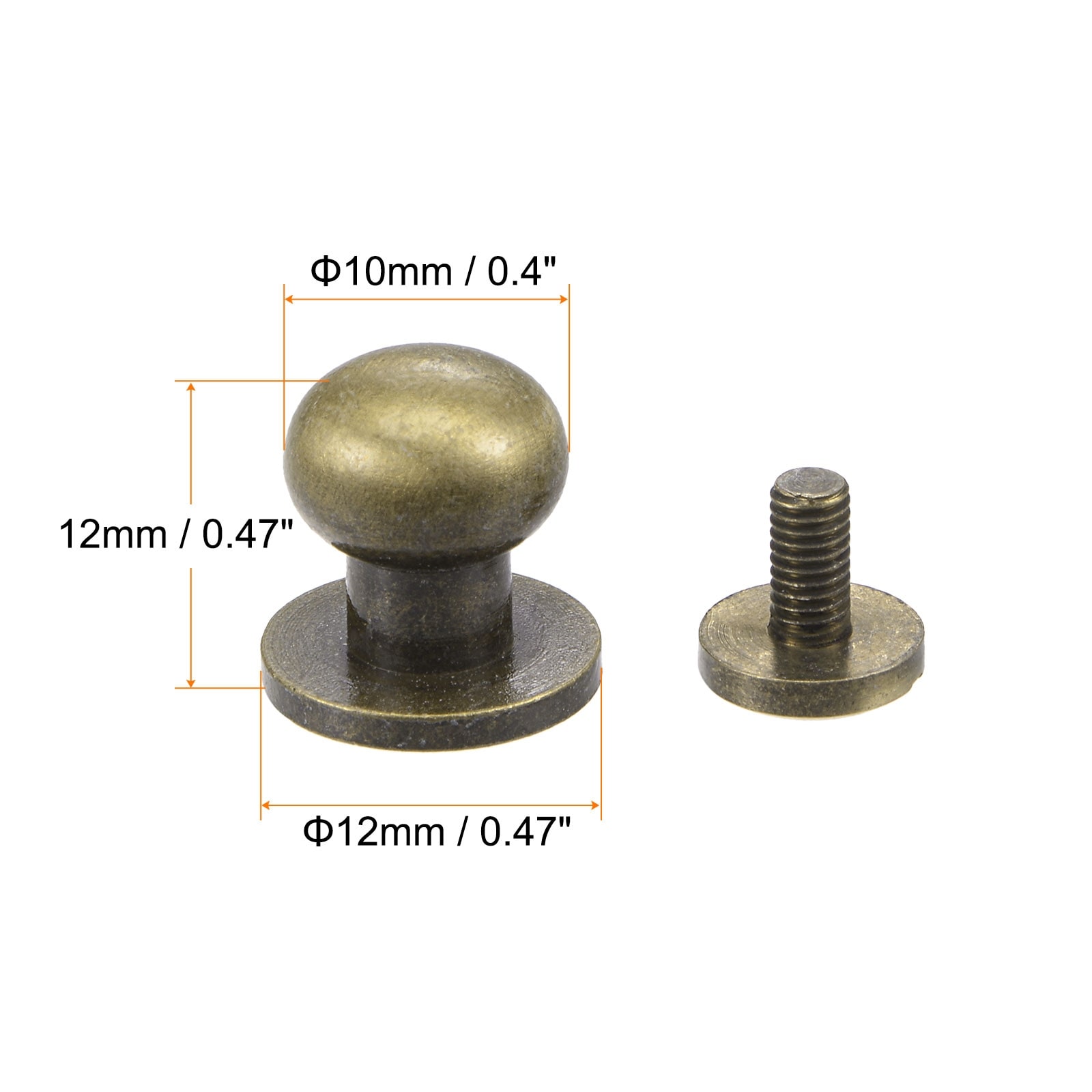 10 Set 5mm Brass Round Head Stud Screw Rivets for DIY Leather Craft Silver Tone