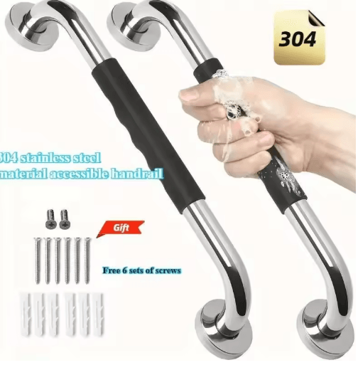 304 Stainless Steel Shower Handle Non Slip Silicone Grip Safety Grab Bar 30 Cm