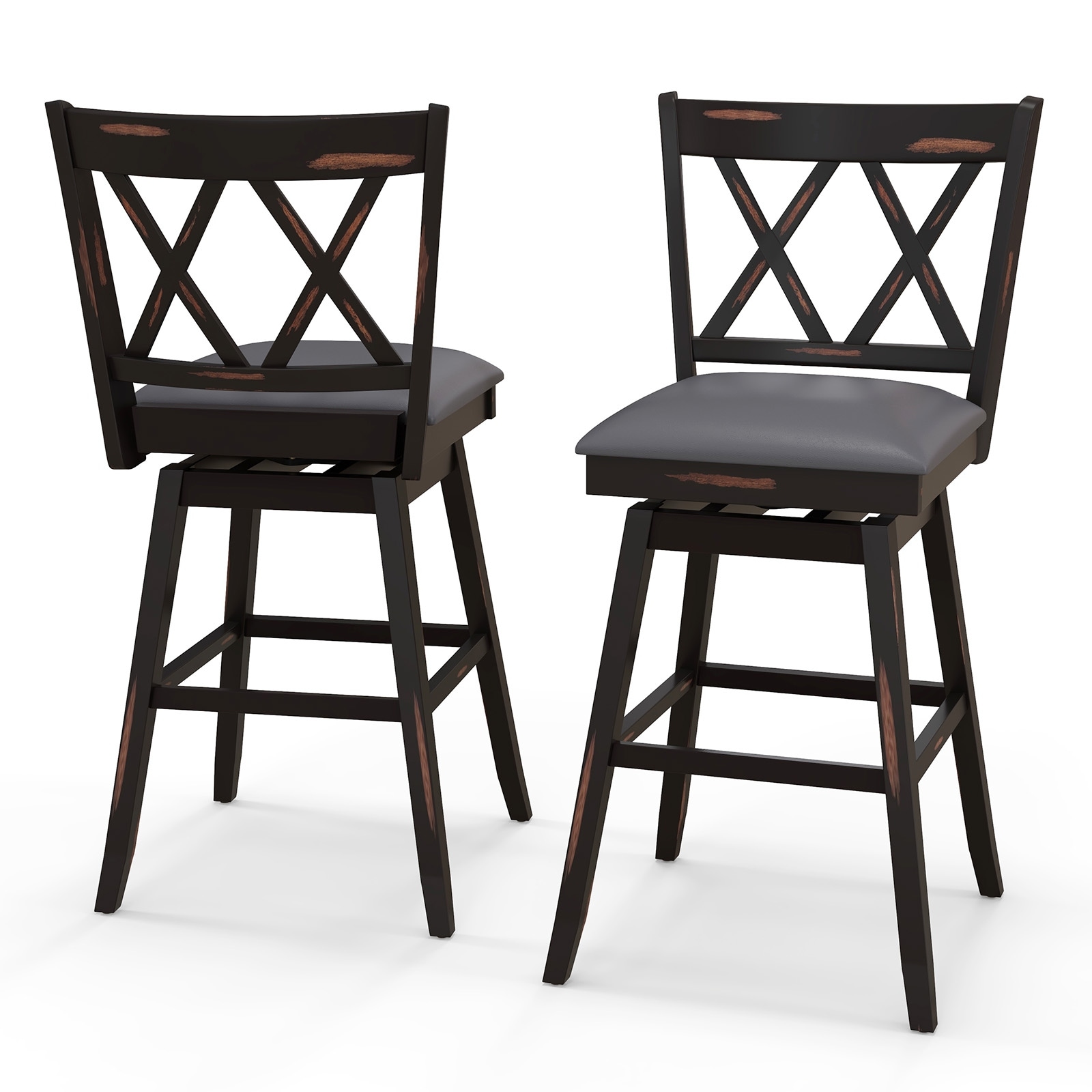 Costway Bar Stools Set of 2/4 with Ergonomic Backrest Rubber Wood Legs - See Details