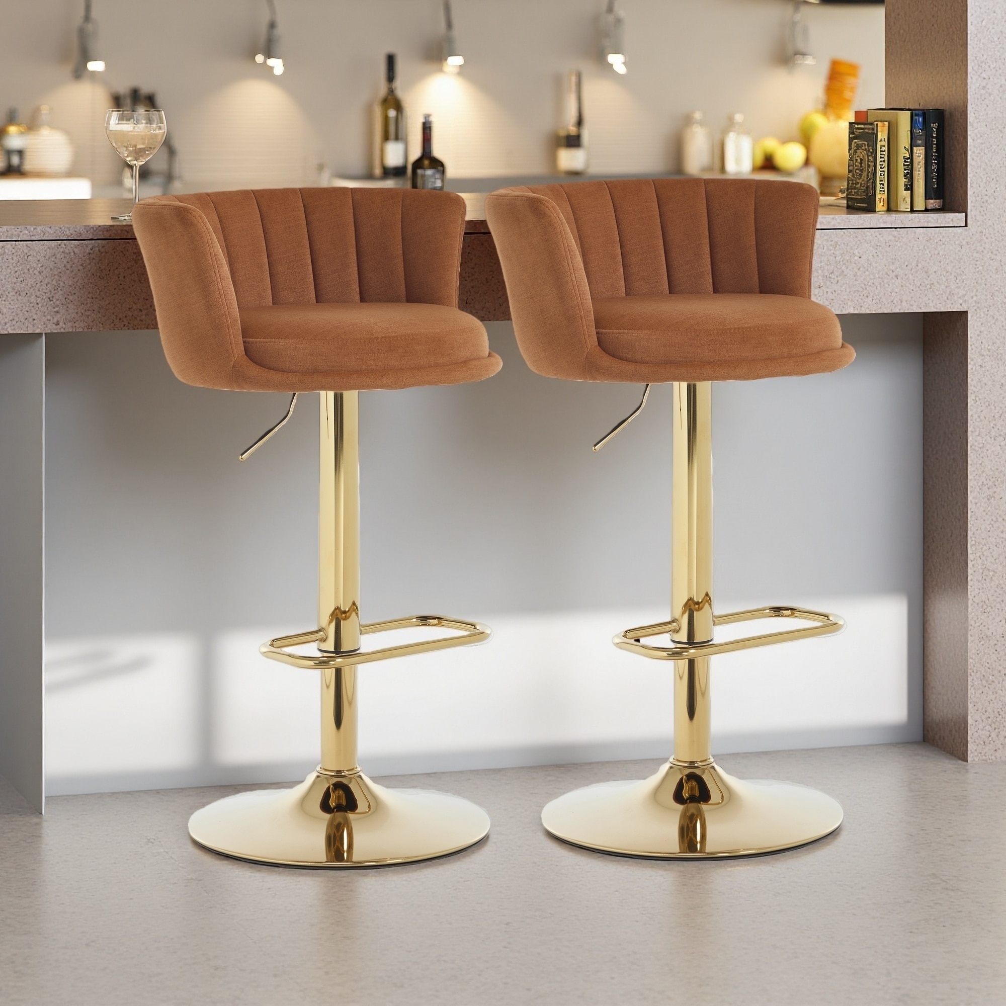 HOMEFUN Velvet Adjustable Height Swivel Armless Bar Stools With Golden Footrest(set of 2)