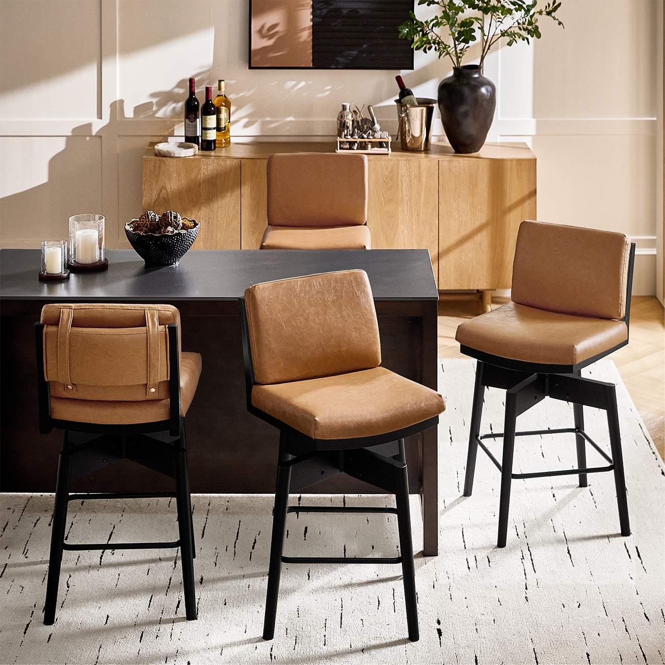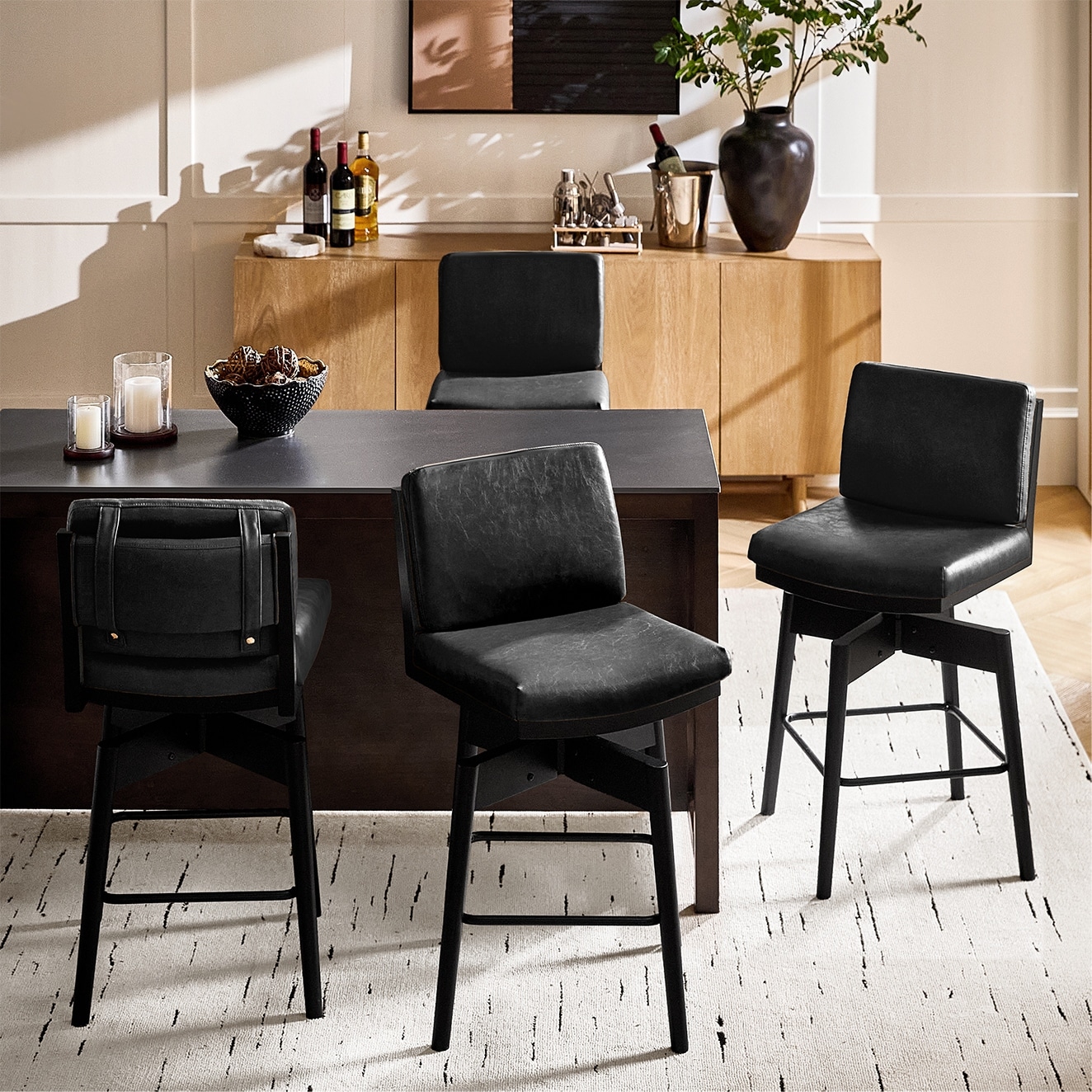 Rodney Modern PU Leather Swivel Bar stool with Removable Back Cushion and Solid wood Legs Set of 4 By HULALA HOME