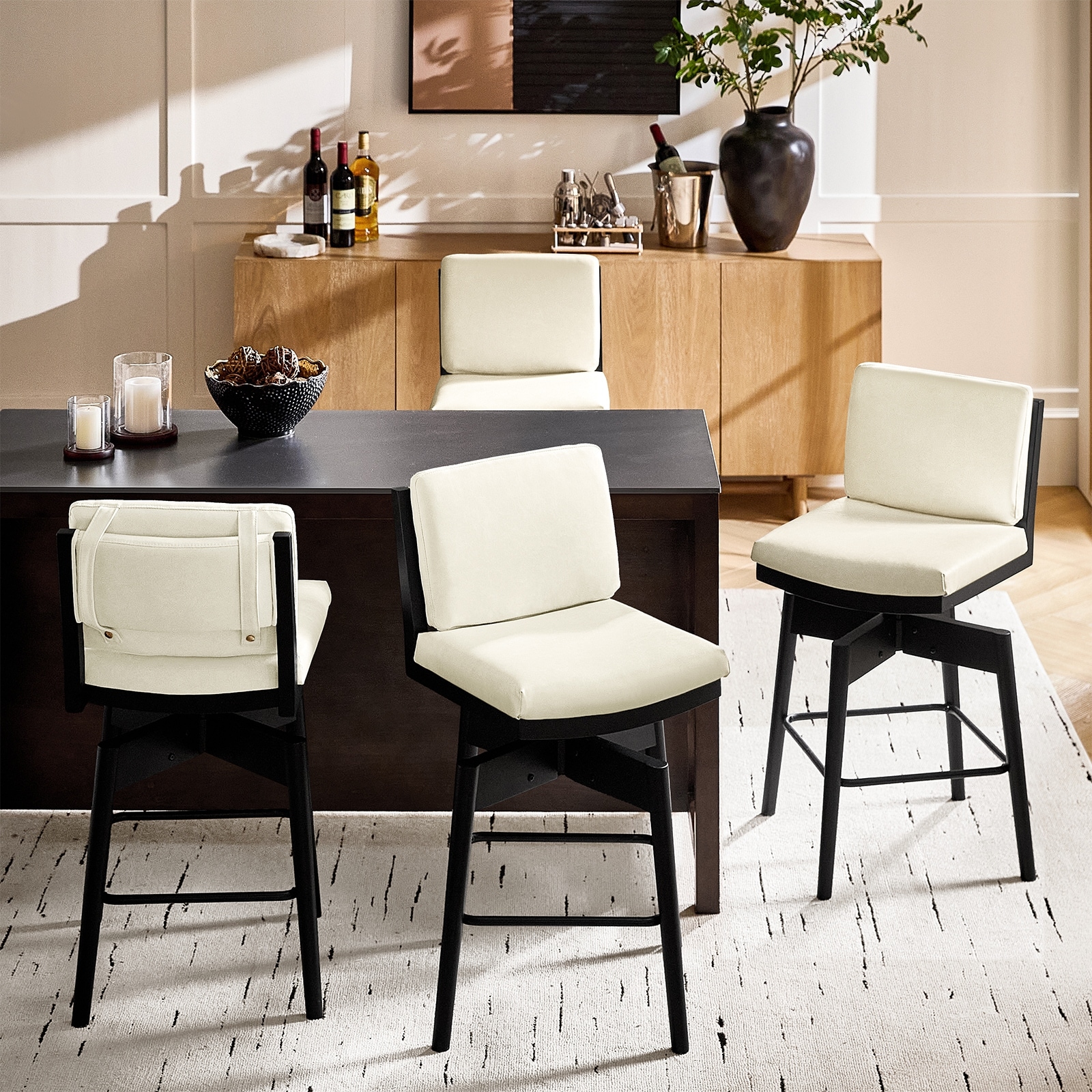 Rodney Modern PU Leather Swivel Bar stool with Removable Back Cushion and Solid wood Legs Set of 4 By HULALA HOME