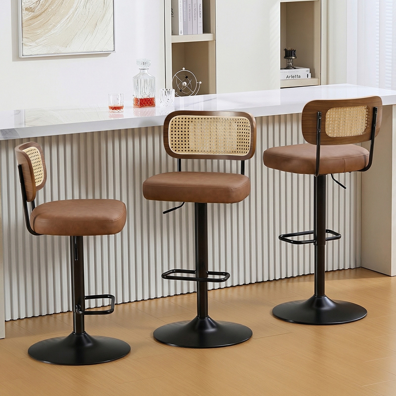 Set of 2 Bar Stools Modern PU Leather Swivel Bar Chairs