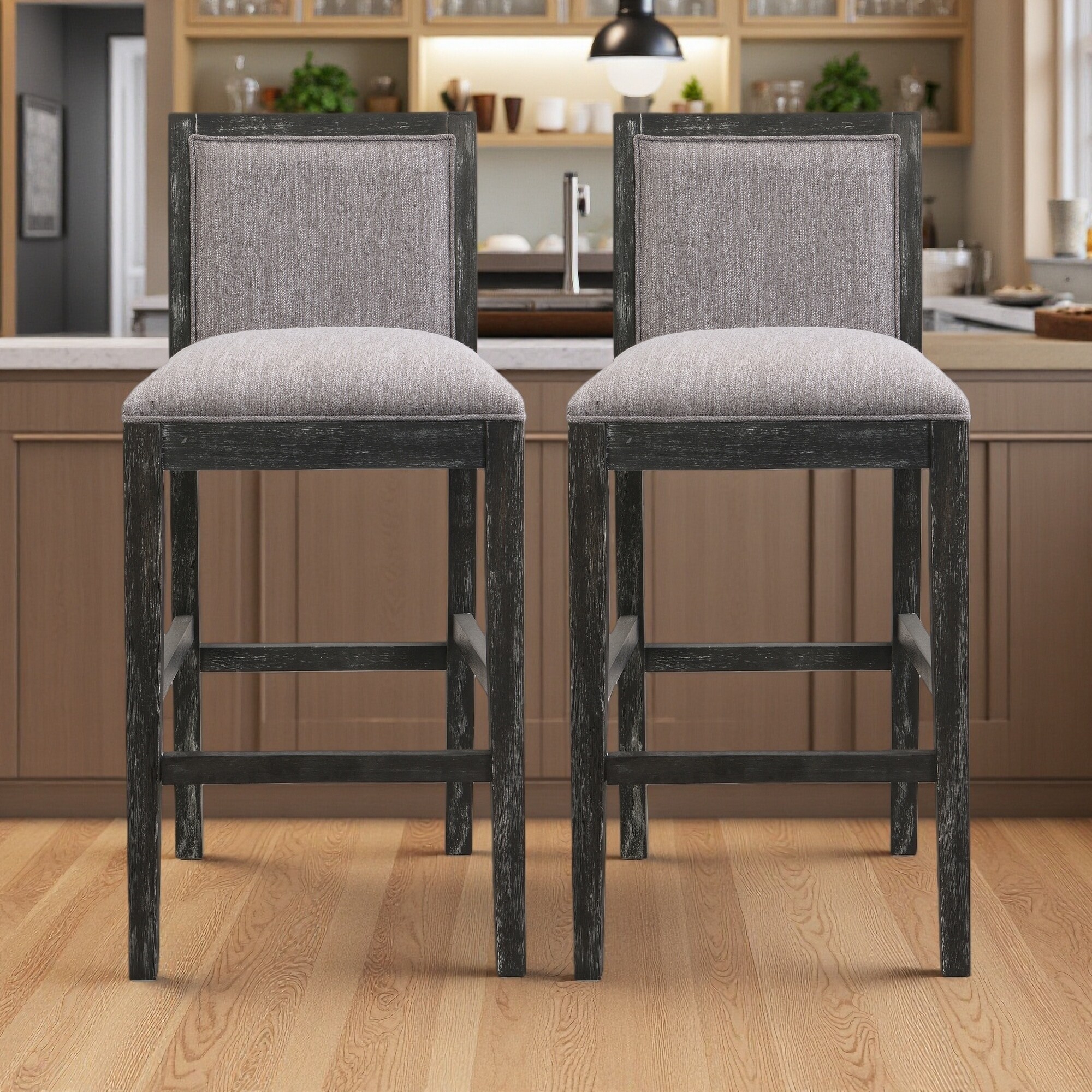 30.5" Fabric Upholstered Bar Stools Set of 2 with Cushioned Seat and Rubberwood Frame