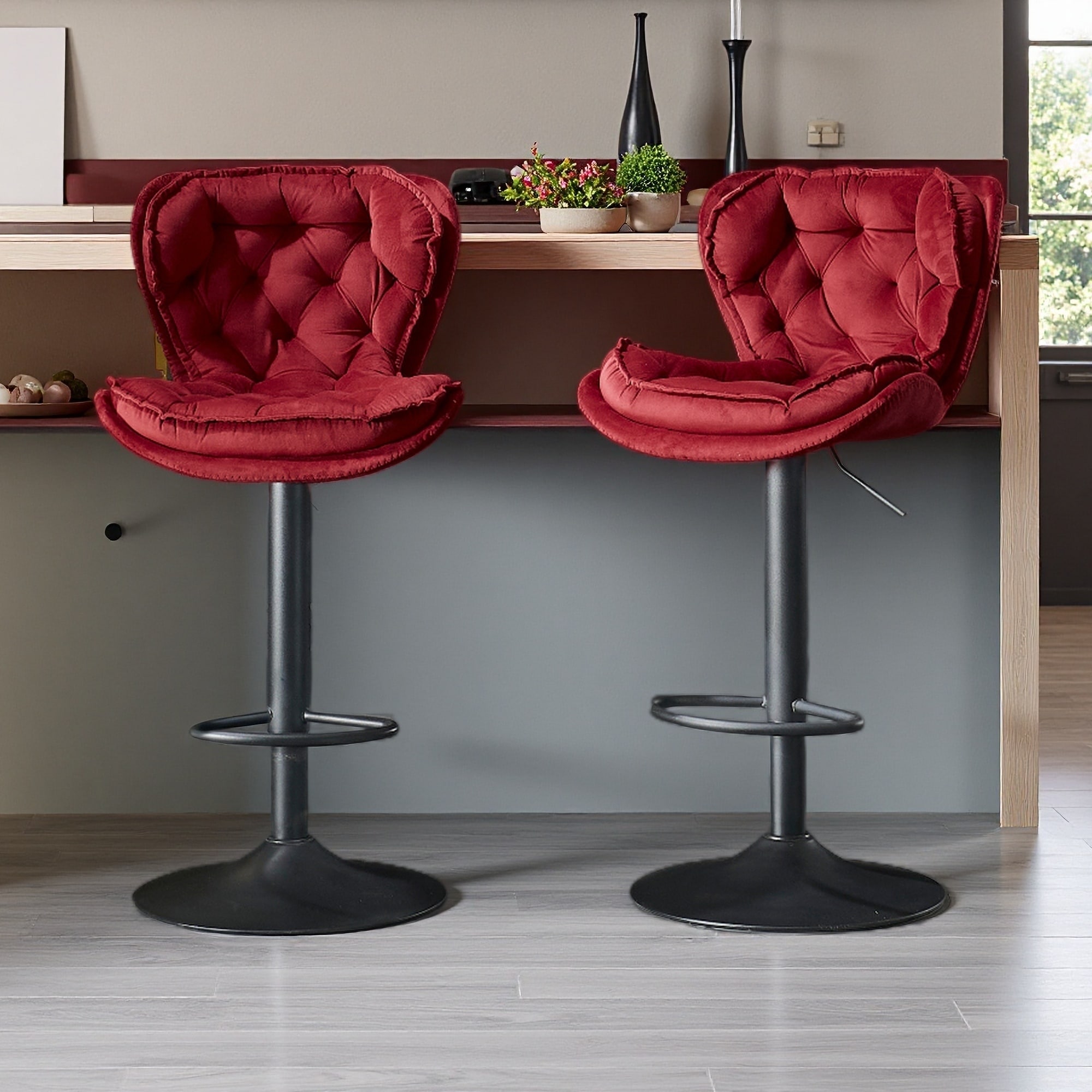 Velvet Adjustable Swivel Bar Stools with Footrest and Metal Legs, Set of 2