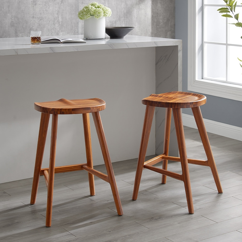 Carson Carrington Vallberga 26" Counter Stool with Walnut-Glazed Wood Base (Set of 2)