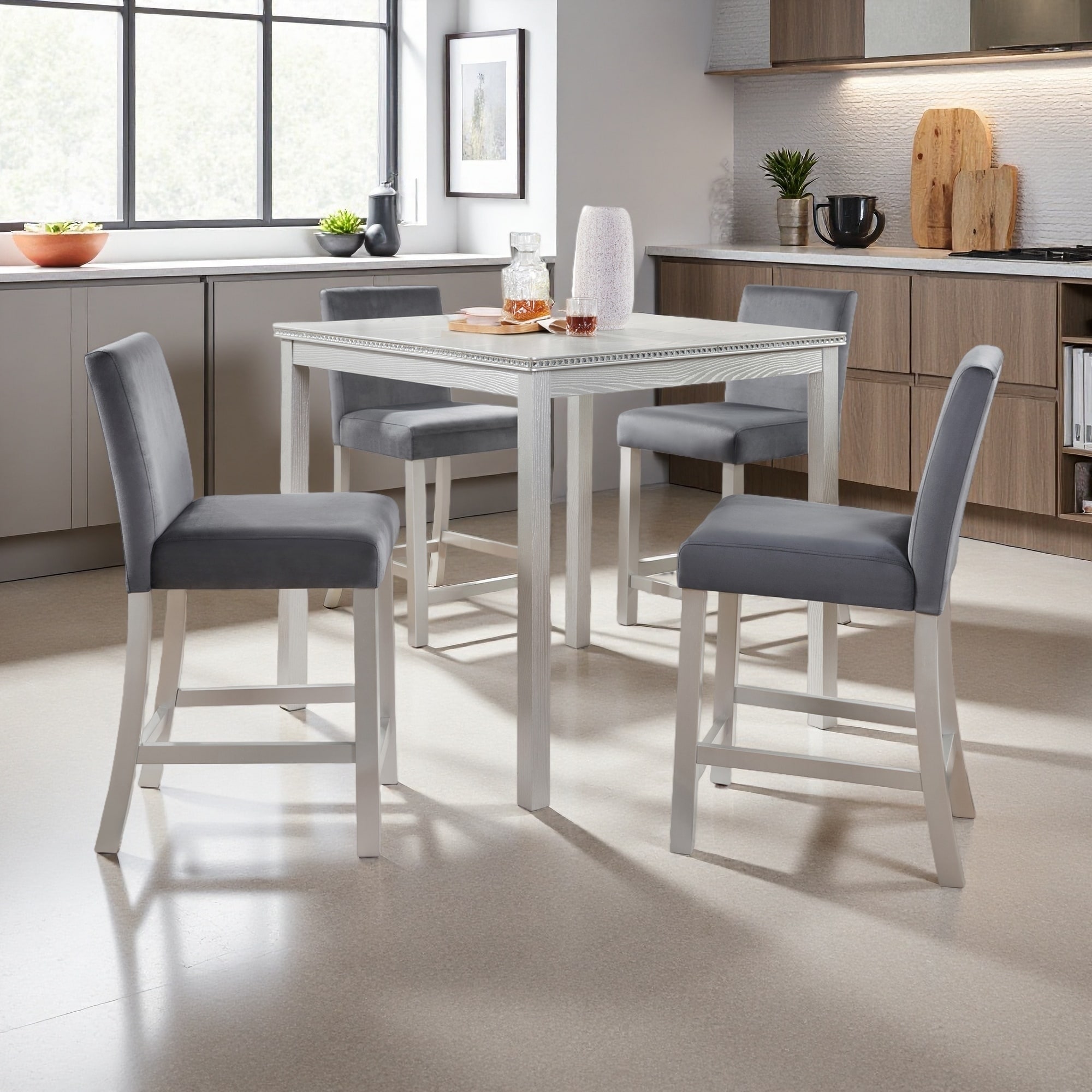 Solid Wood Counter Height Chairs with Padded Flannelette Seat and High Back, Set of 4
