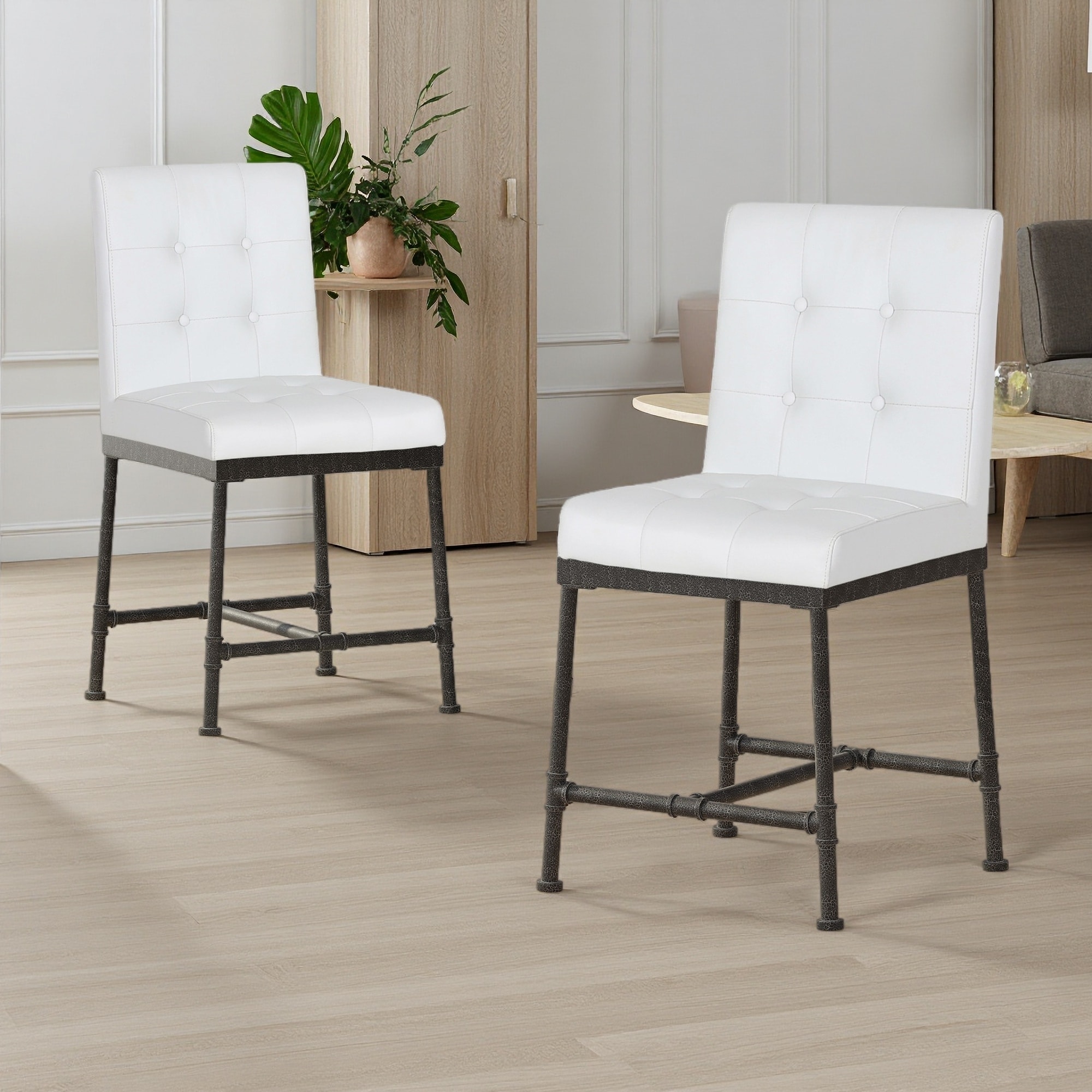 Fabric Armless Counter Stools Set of 2 with Button-Tufted Seat and Metal Pipe Base