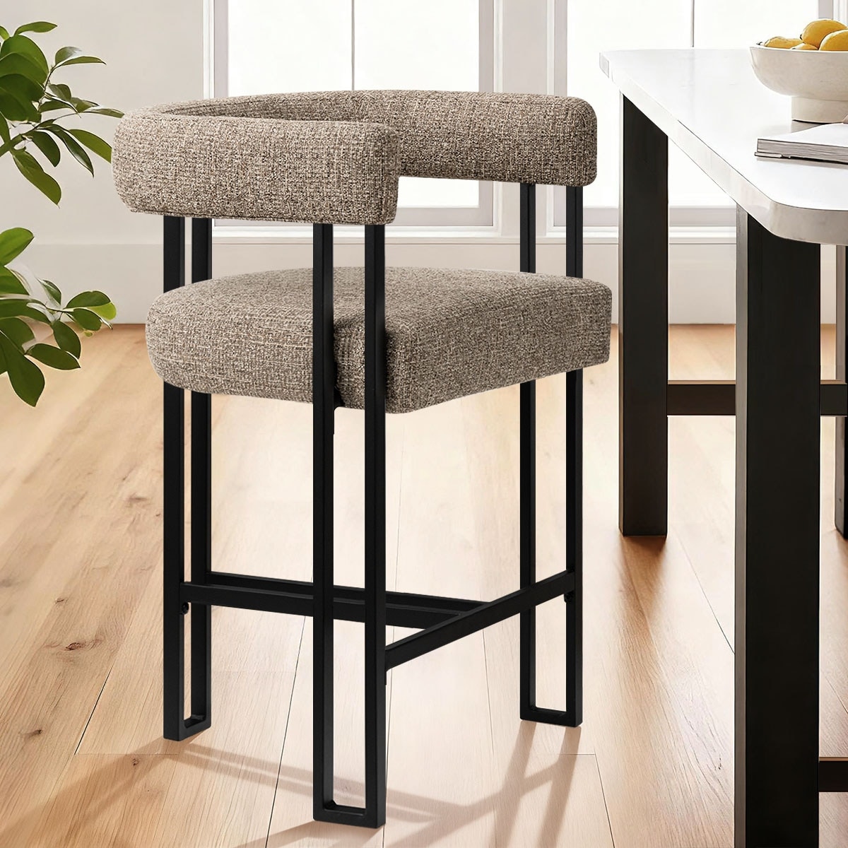 24" Seat Height Upholstered Tweed Solid Back Counter Stool
