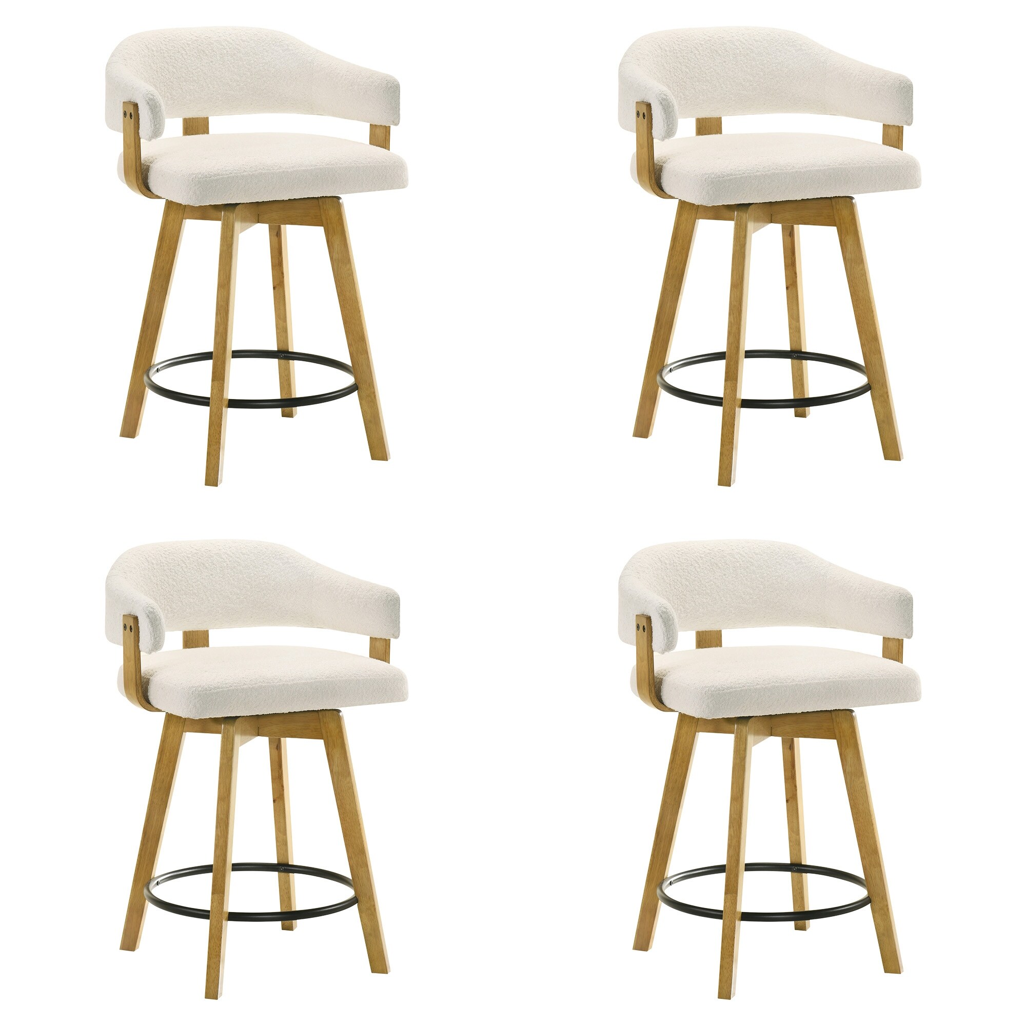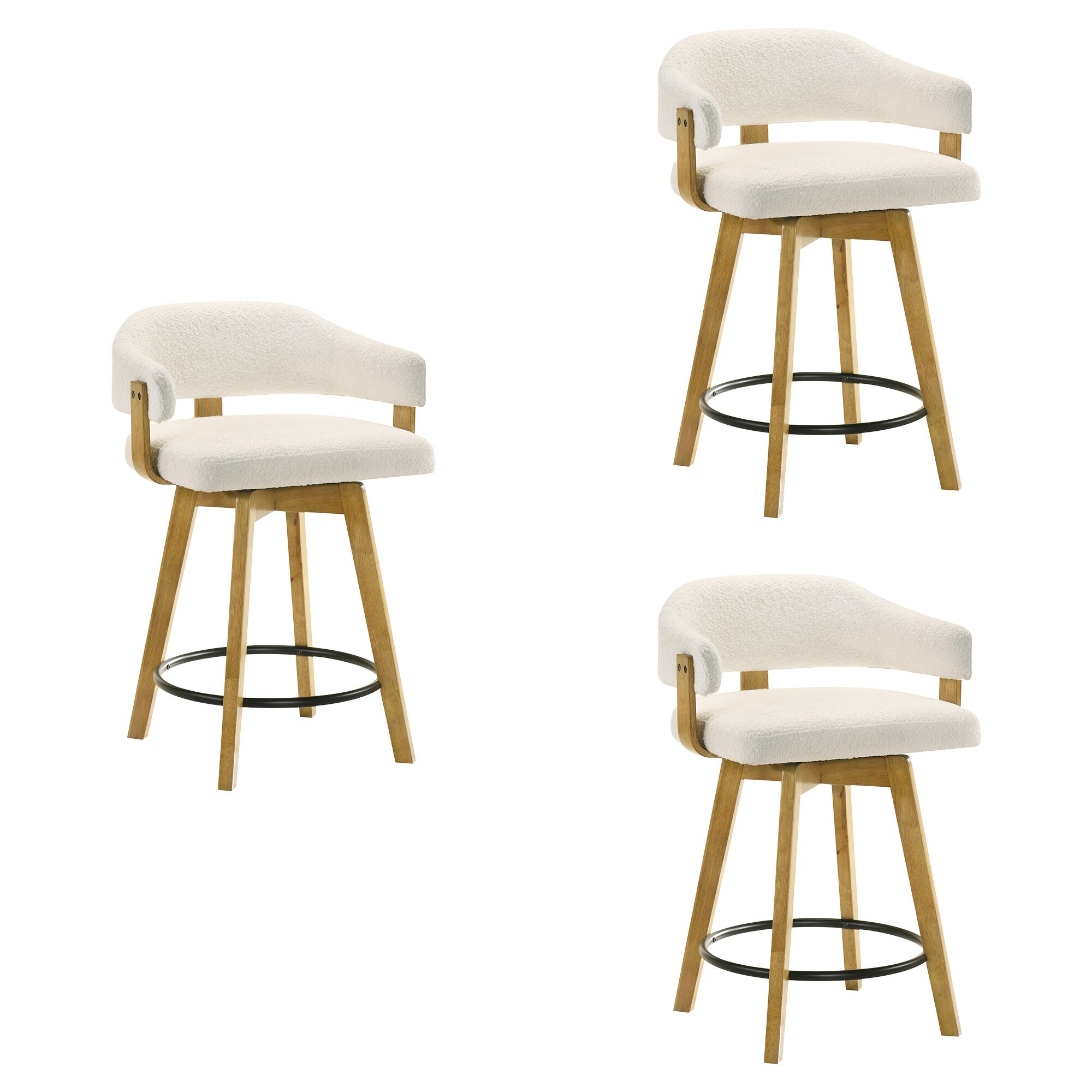 Annikah Low-Back Boucle Bar Stool, Counter Height Kitchen Barstool with Wood Legs