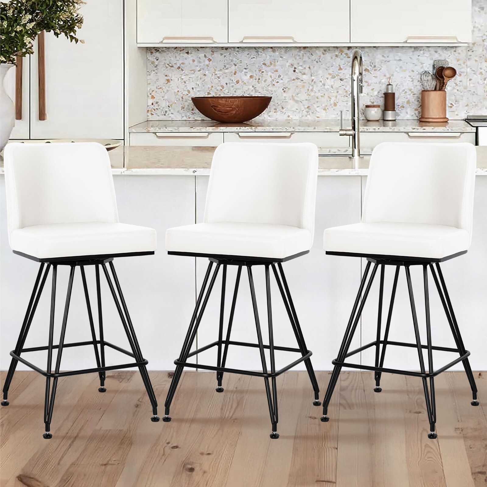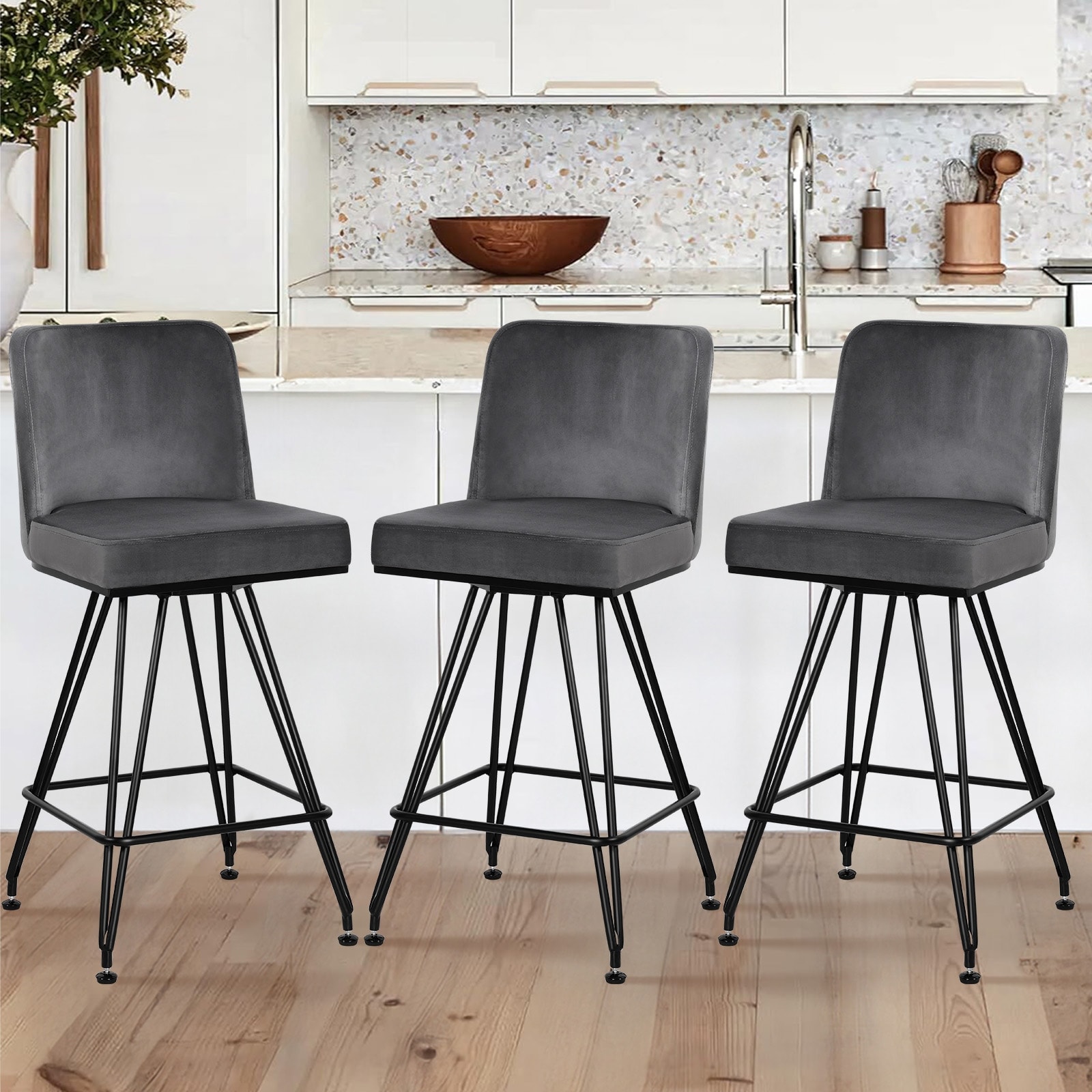 26" Upholstered Swivel Counter Height Bar Stools with Metal Frame - 38.2"H x 17.7"W x 19.1"D