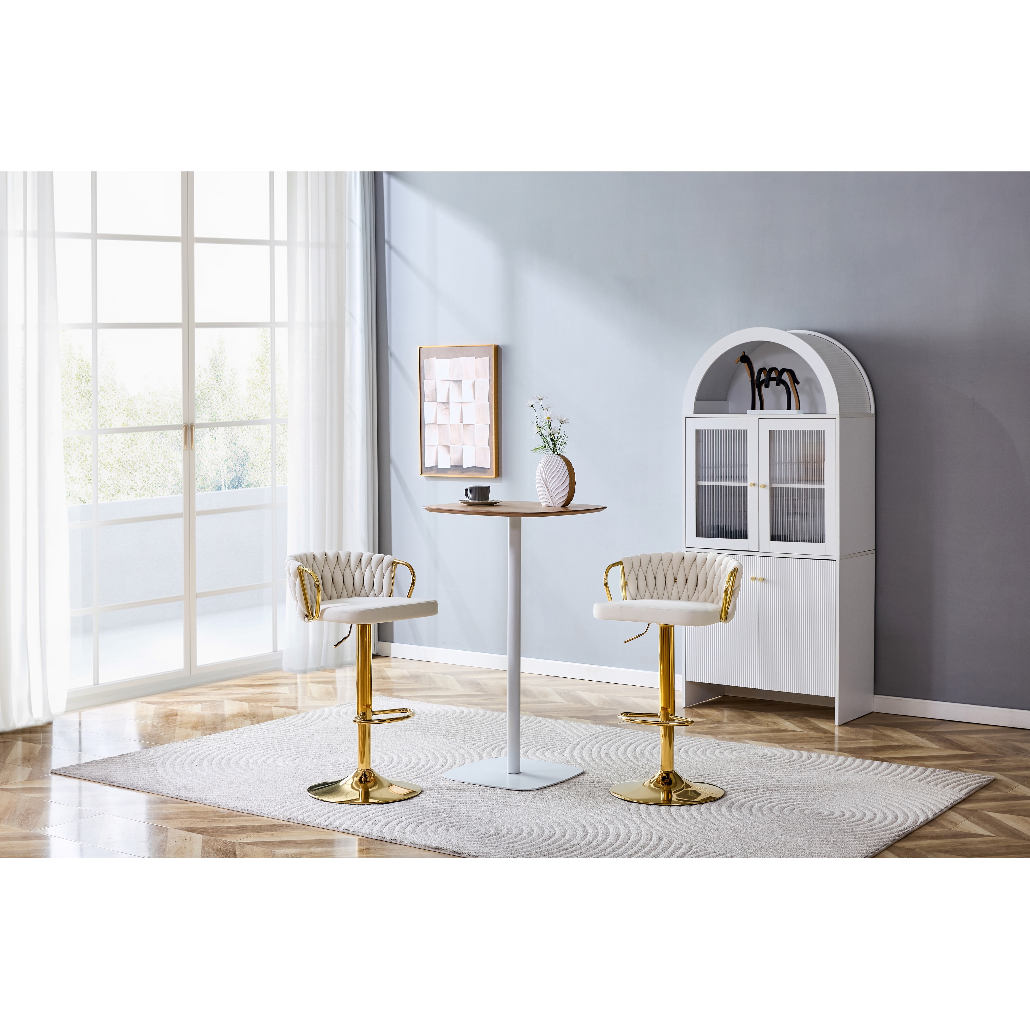 Set of 2 Modern Luxury Velvet Braided Bar Stool with Adjustable Height, Metal Base & Woven Rope Backrest