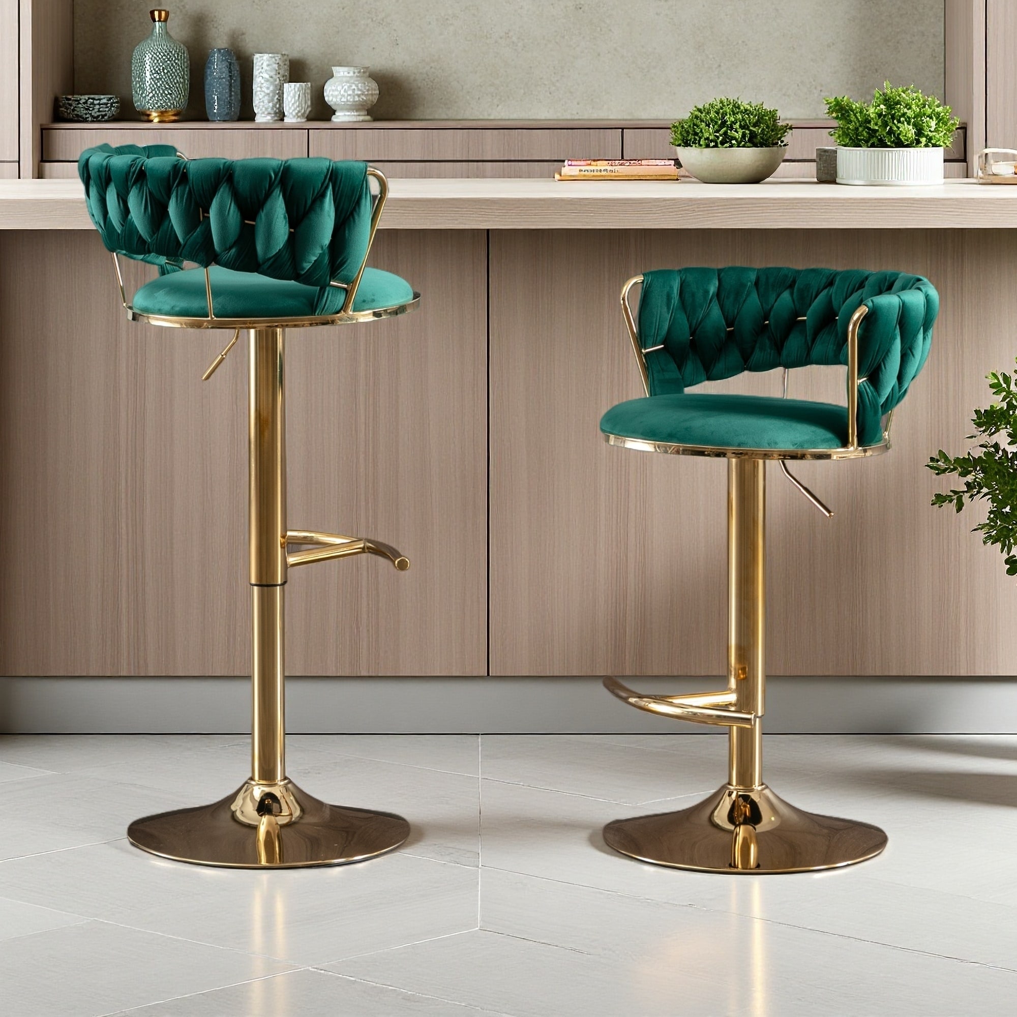 Velvet Adjustable Swivel Bar Stools with Chrome Footrest and Metal Legs, Set of 2