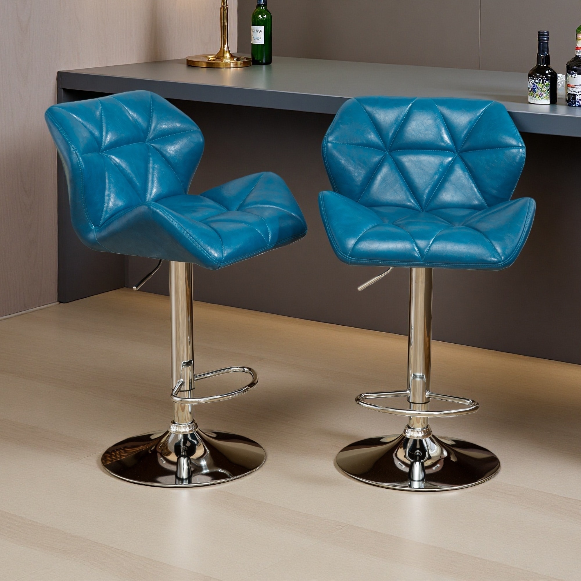 PU Leather Tufted Adjustable Bar Stools Set of 2 with Swivel Function and Built-In Footrest