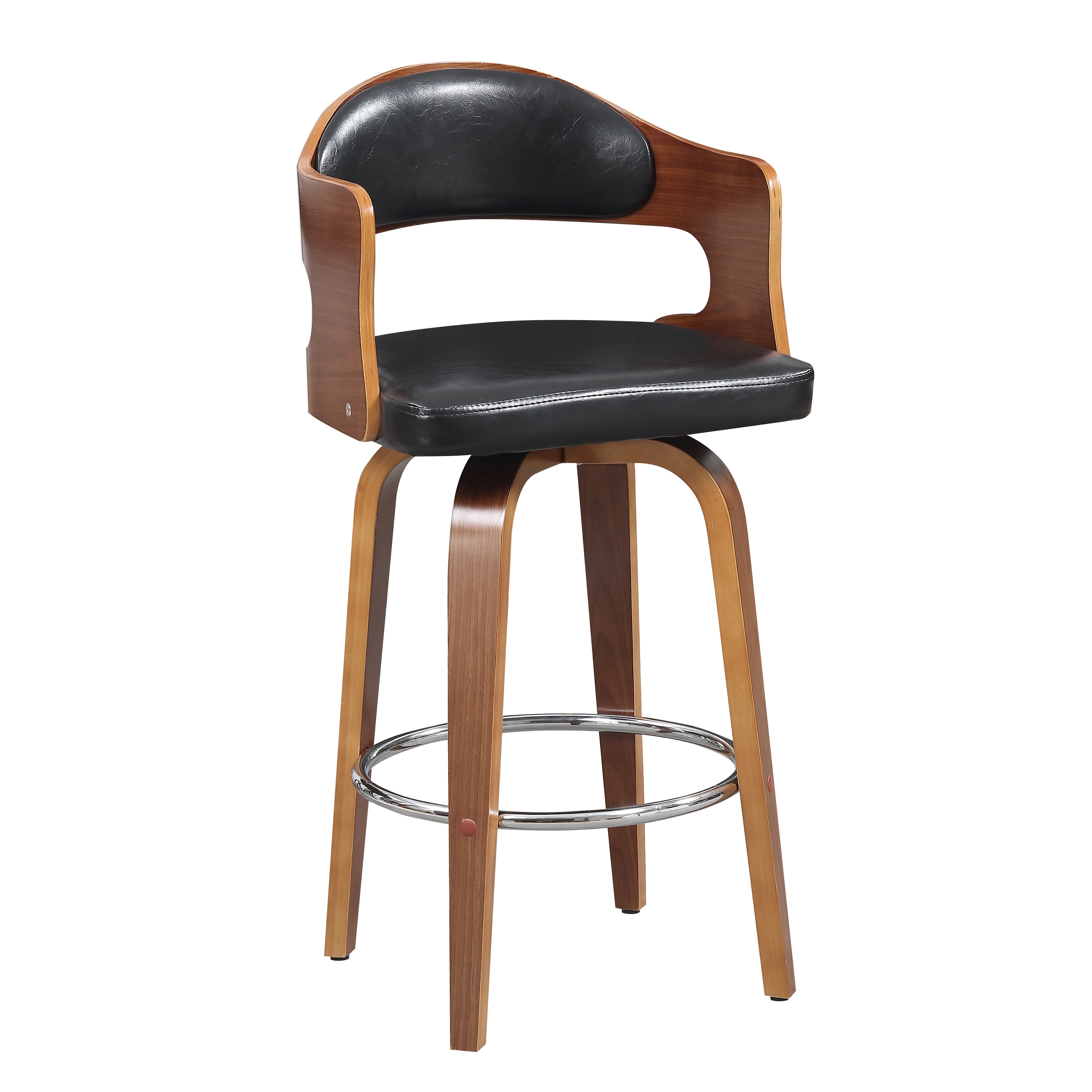 Mid-Century Swivel Bar Stool with Curved Wood Back and Faux Leather Comfort