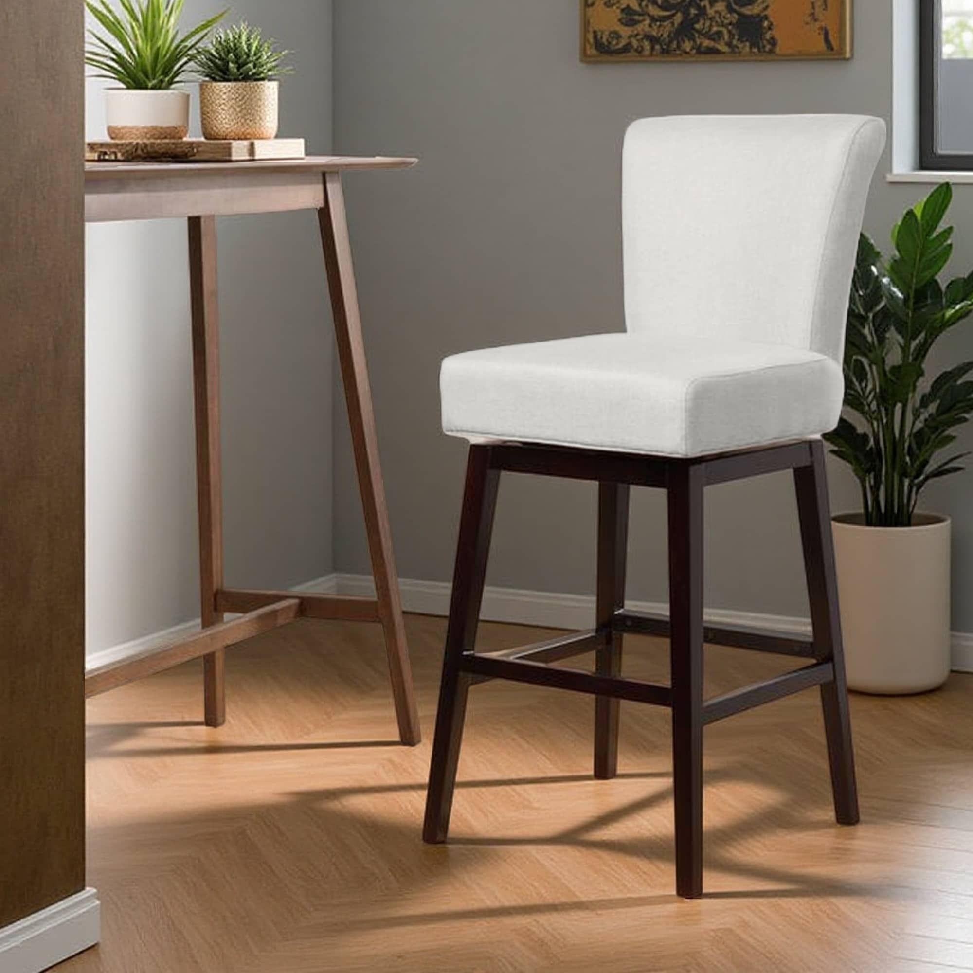 Fabric Swivel Counter Stool with Solid Wooden Legs and Padded Seat for Living Room, Bedroom, or Home Office