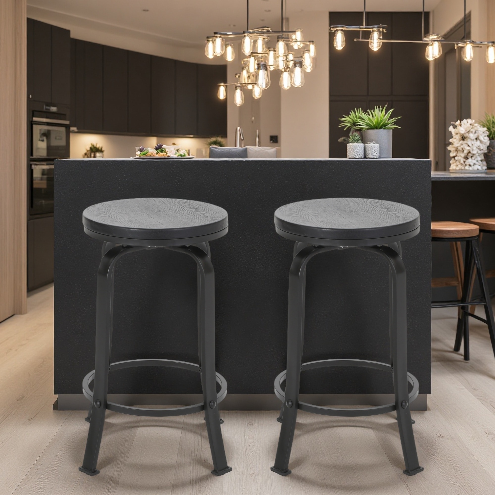 24.25"H Iron Frame Swivel Counter Stools Set of 2 with Faux Wood Seat
