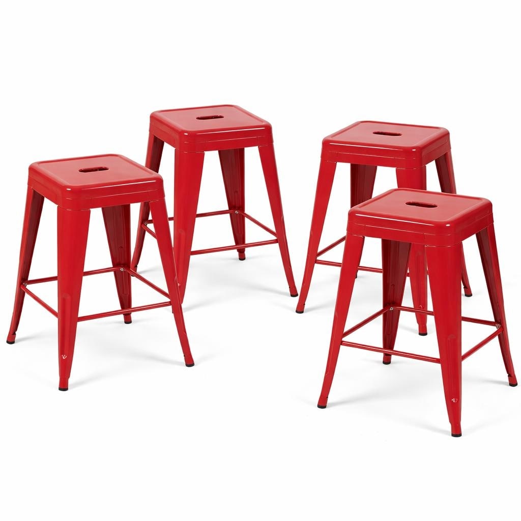 24 Inch Counter Height Stool, Backless Metal Bar Stools Set of 4, Non-Stackable, Detachable & Easy Assembly