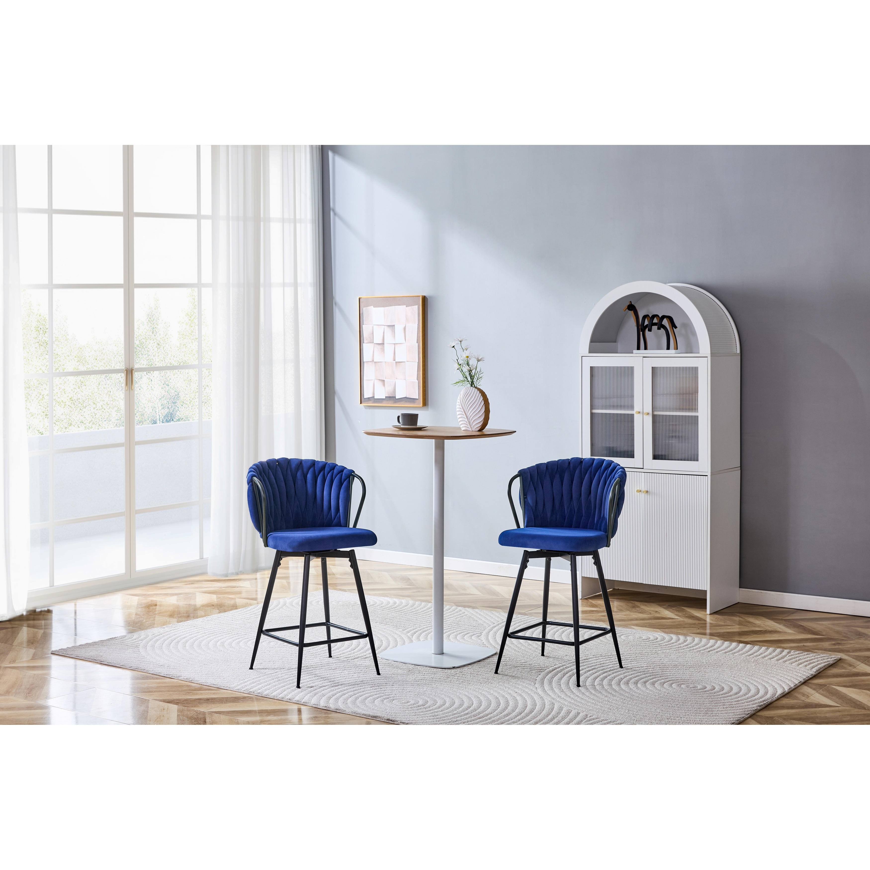 Set of 2 Modern Velvet Braided Bar Stool with Metal Frame, Upholstered Counter Height Stool