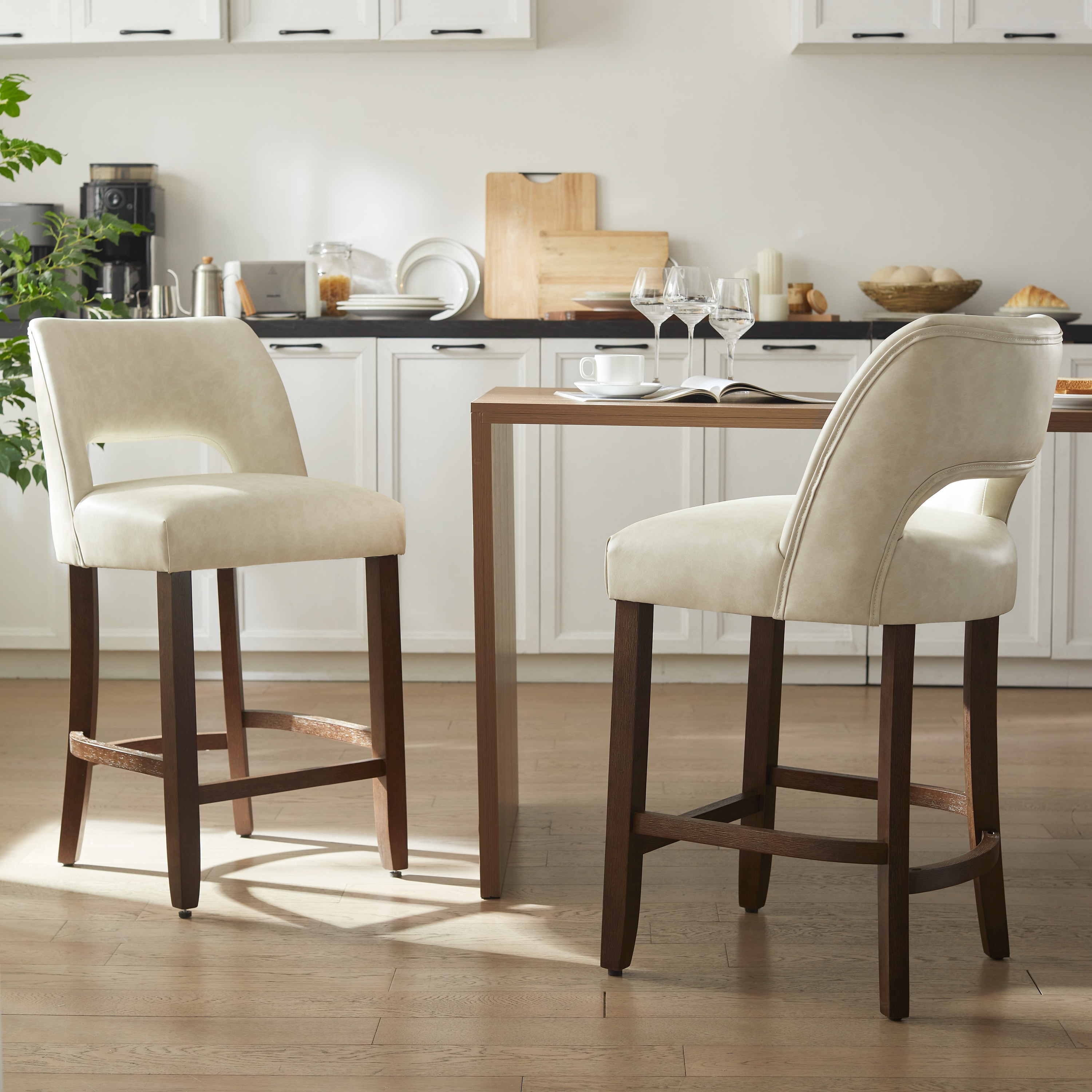 Wood Legs Faux Leather Bar Stools with Footrest/Counter Stools