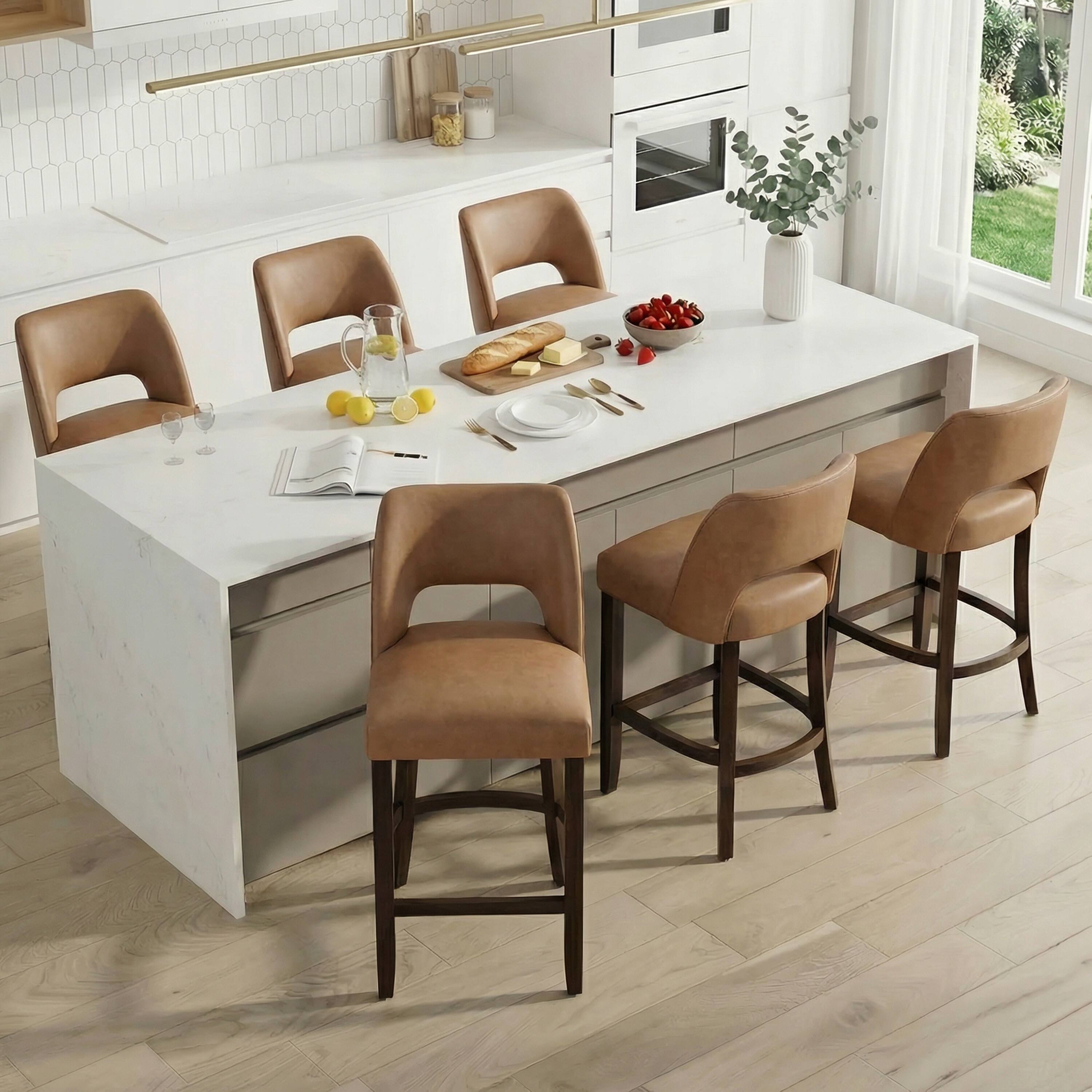 Wood Legs Faux Leather Bar Stools with Footrest/Counter Stools