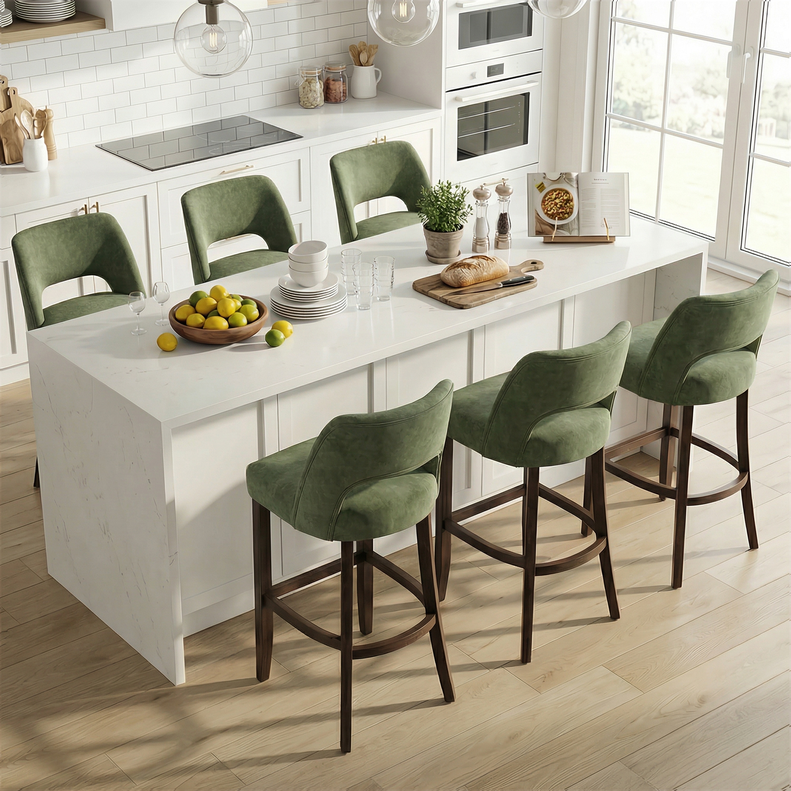Roomfitters Velvet Bar Stools Set of 2, Tufted Upholstered Counter Chairs with Nailhead Trim and Wooden Legs
