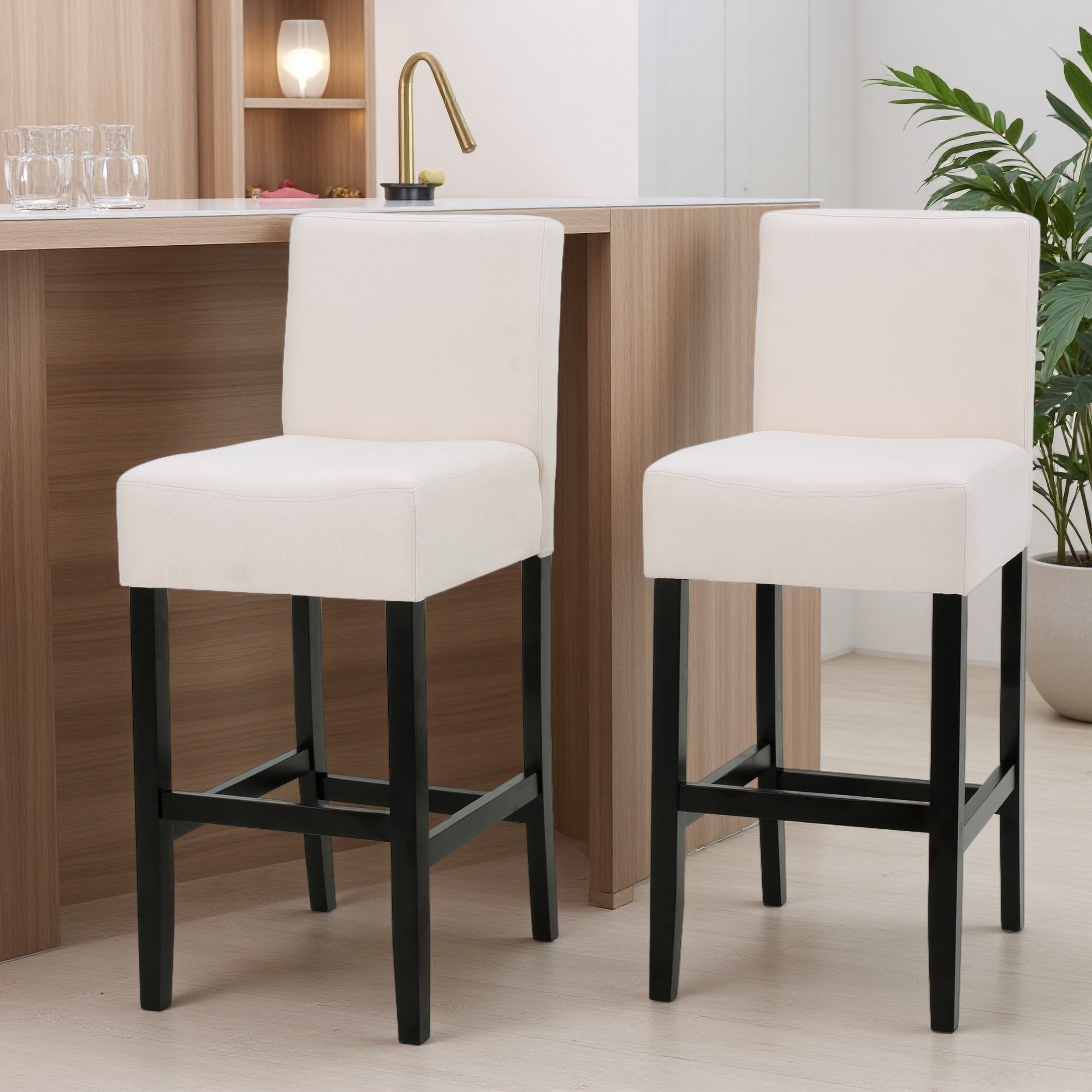 Wooden Bar Chairs with Upholstered Seat, Backrest and Footrest, Set of 2