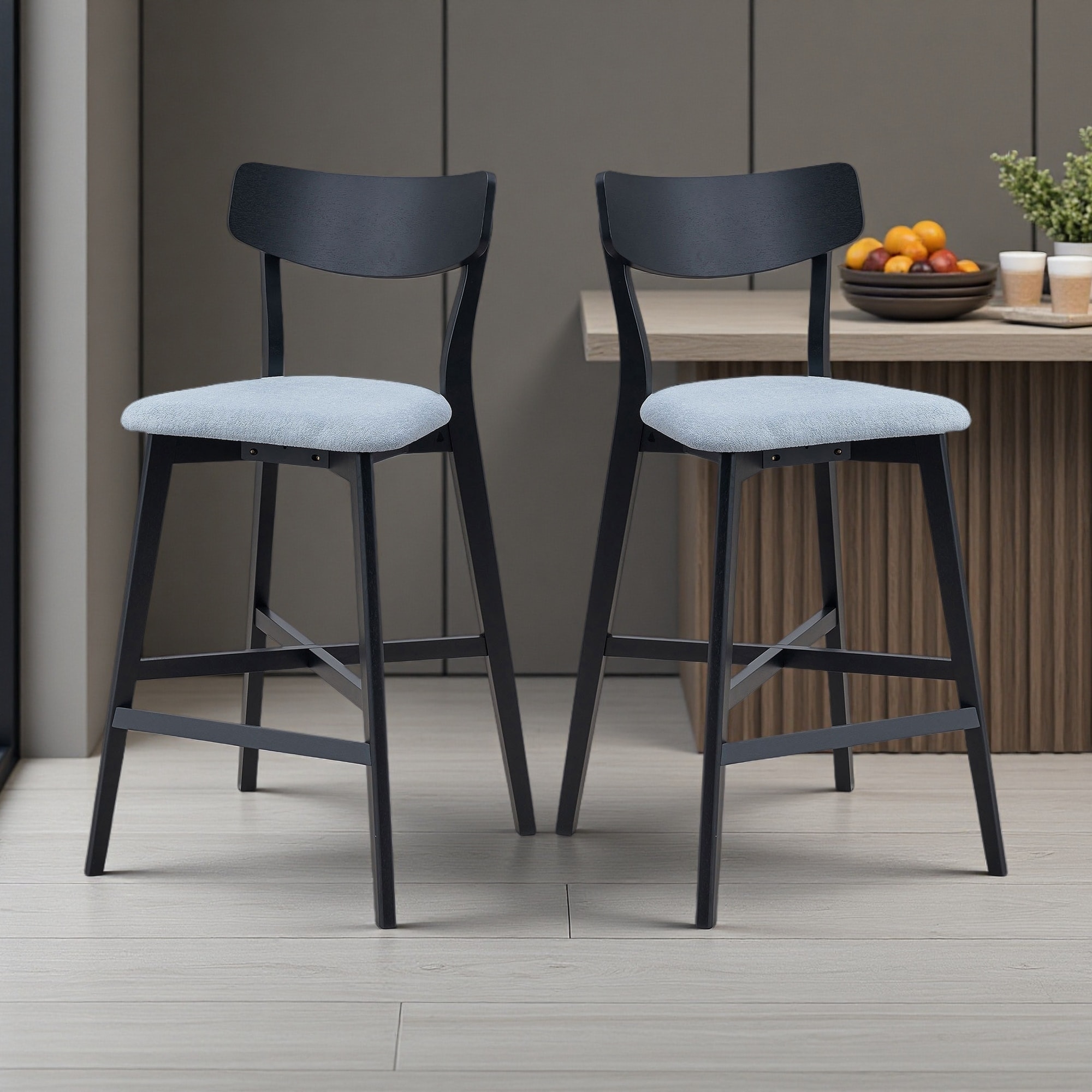 Fabric Counter Stools Set of 2 with Curved Backrest and Studded Accent Trim