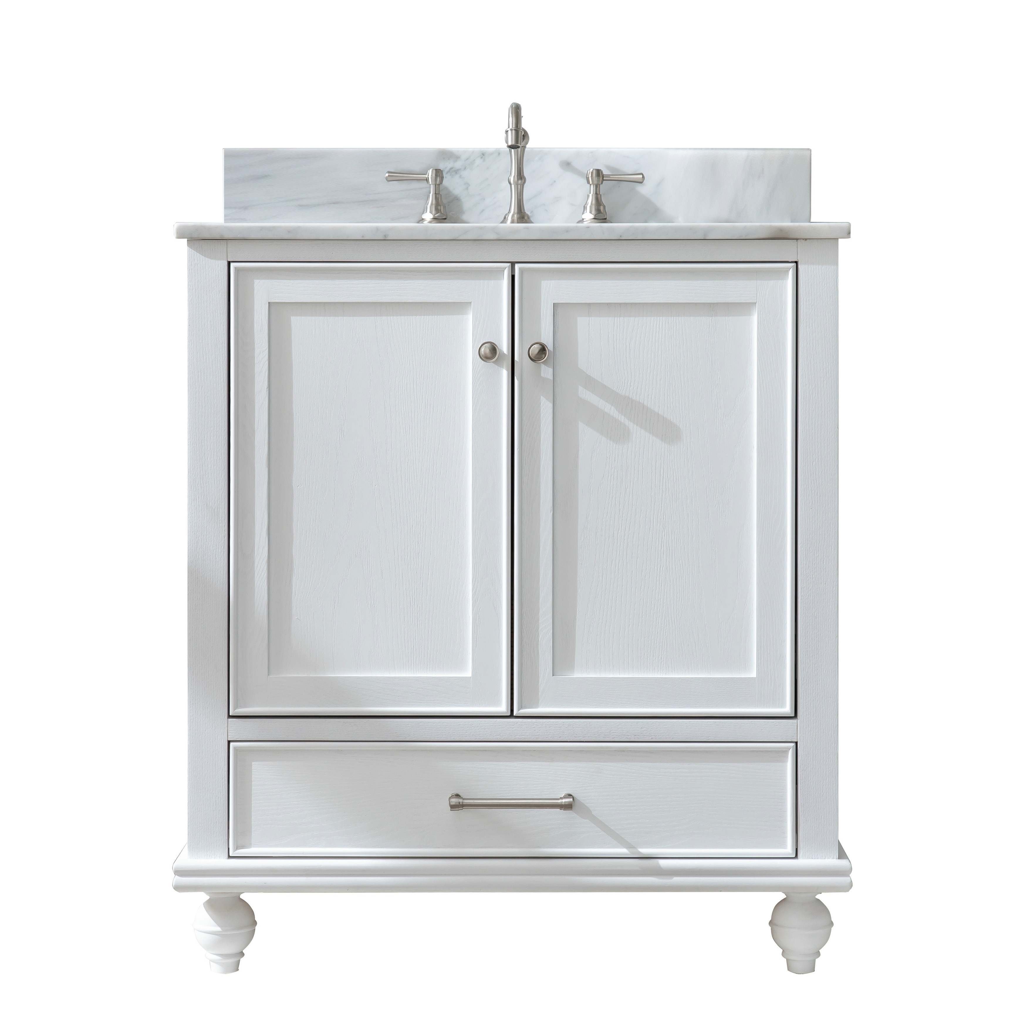 Roomfitters 30" Timeless Bathroom Vanity with Ceramic Sink, Textured Glass Doors, Adjustable Shelf, Tip-Out Tray