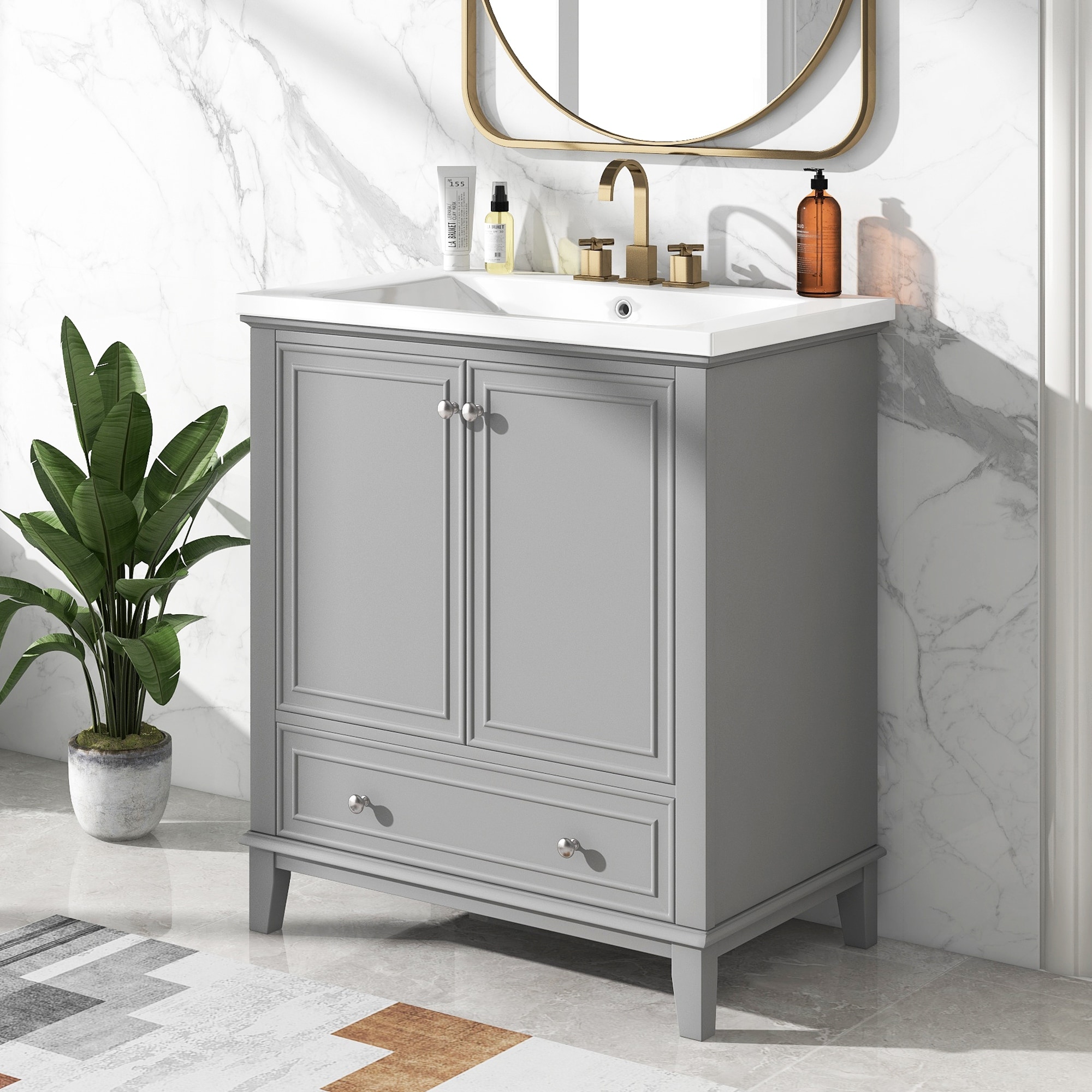 GDFStudio - Emerson 30-Inch Freestanding Bathroom Vanity with Ceramic Sink, Multi-functional Cabinet and Drawer