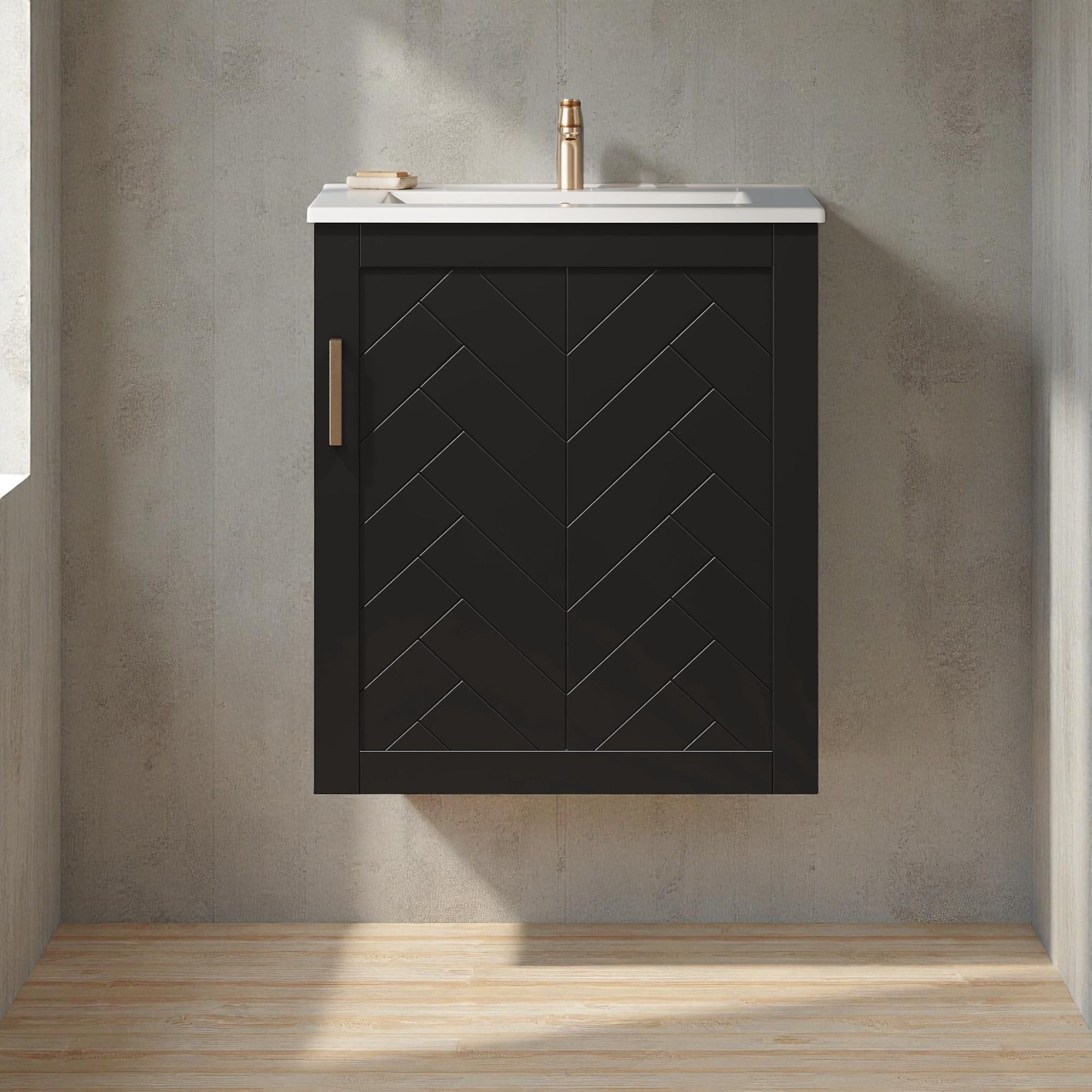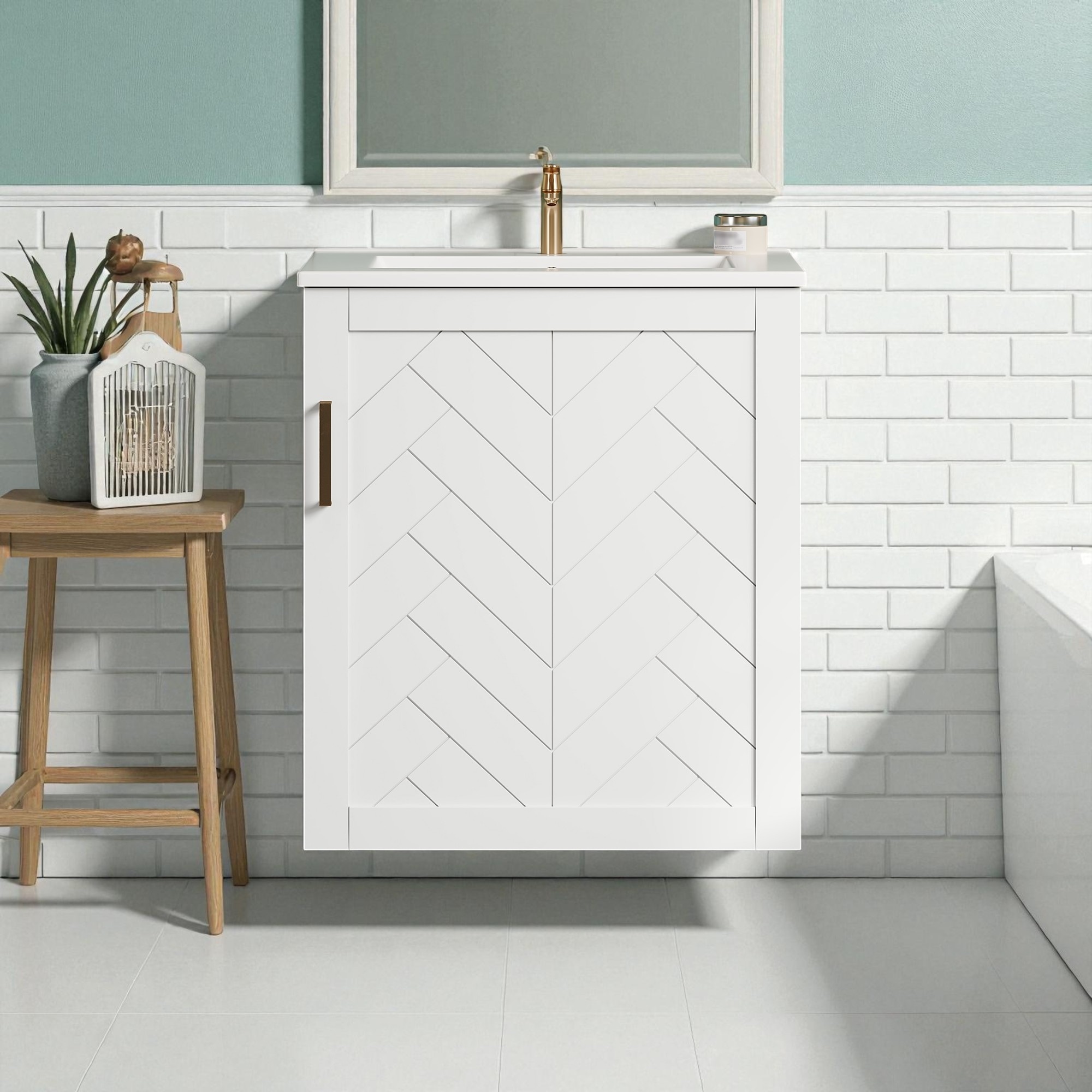 20" Wall Mounted Bathroom Vanity with Sink, Solid Wood & MDF Floating Cabinet, Side Shelf & Soft-Close Door