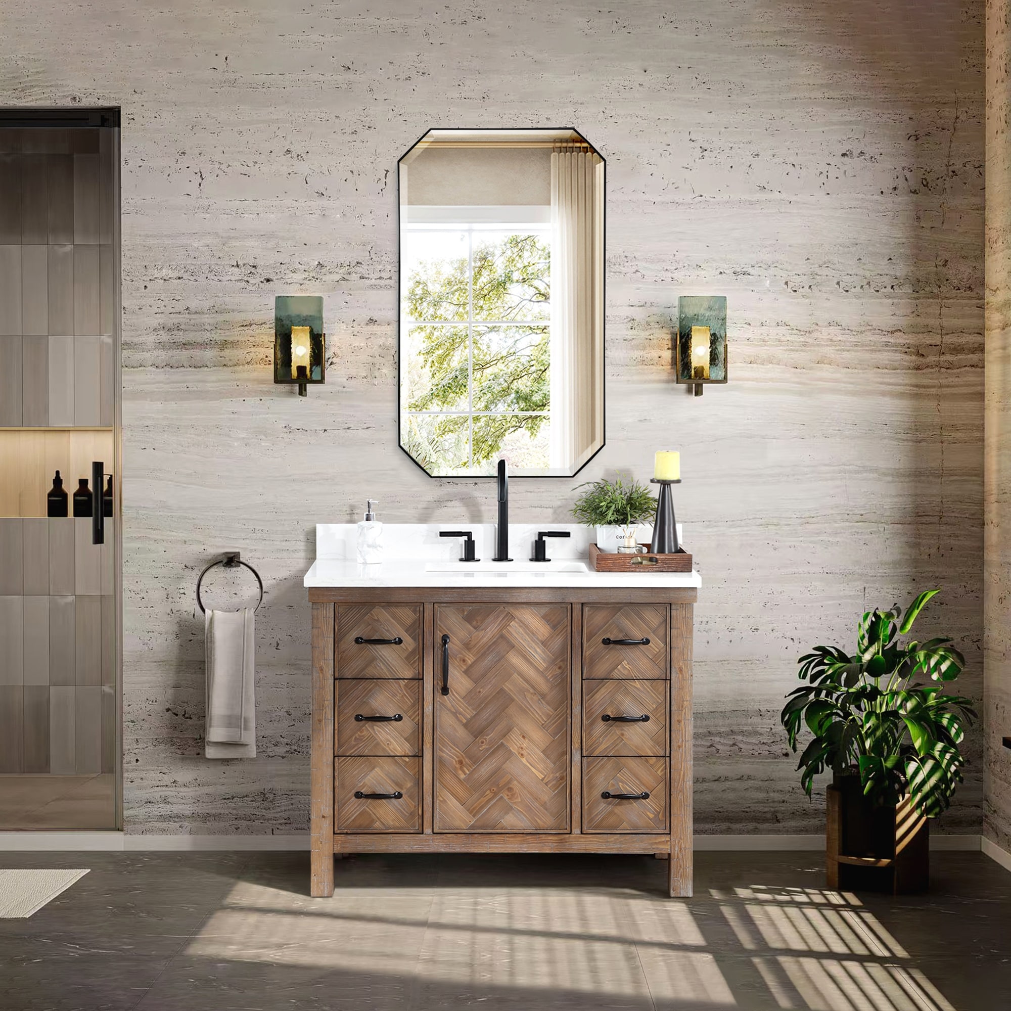 Vanity Art 42" Single Sink Bathroom Vanity Cabinet with Engineered Marble Countertop