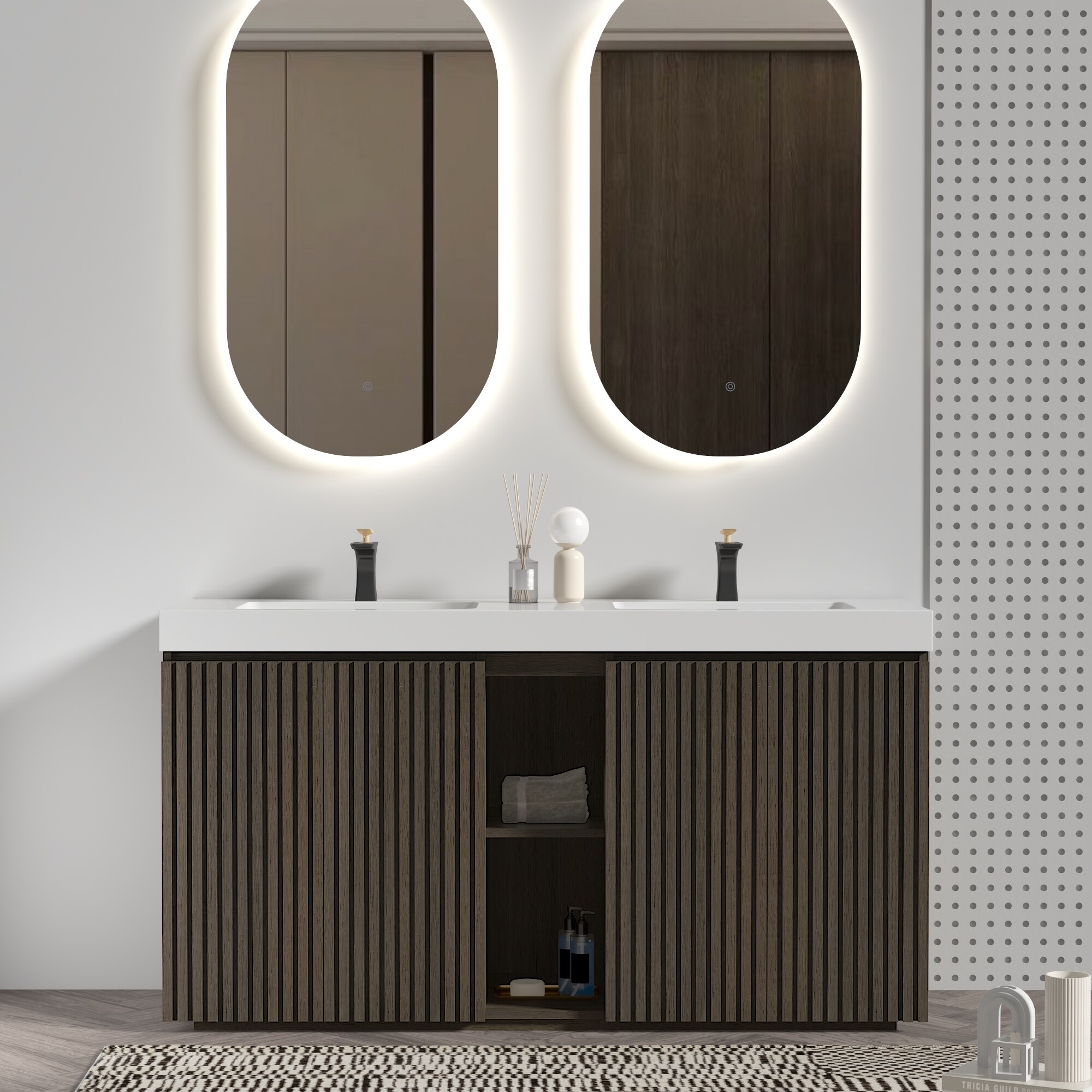 60F" Bathroom Vanity with Sink, Large Storage, One-Piece Sink Basin without Drain and Faucet, without drainage and faucet