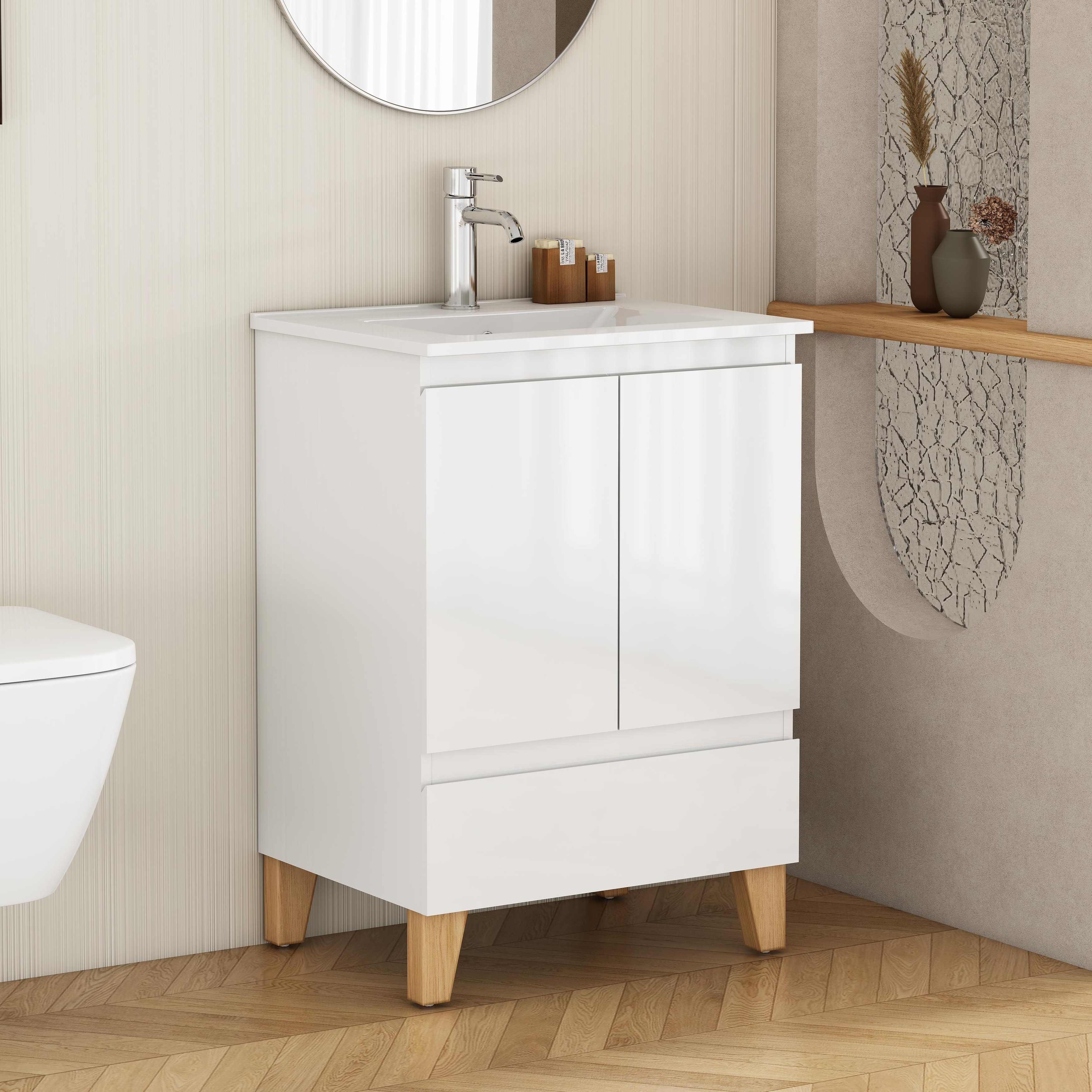 24" Bathroom Vanity Set Mid-Century Modern Vanity with Sink & Faucet